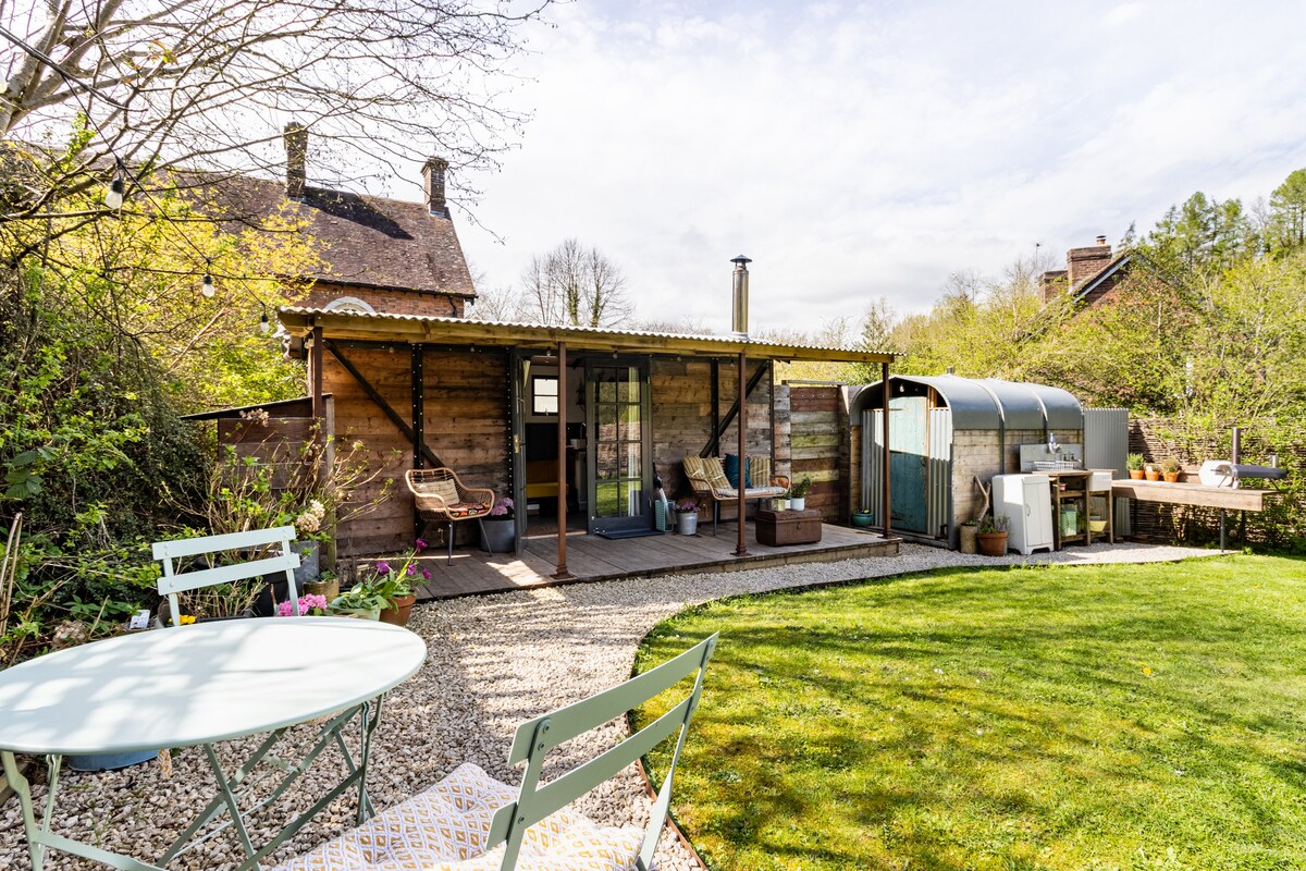 ¡Como se ve en My Unique B&B de BBC2! Situado en un lugar declarado Patrimonio de la Humanidad, Ironbridge Gorge, escondido en una zona residencial tranquila. A tiro de piedra tanto del campo como de la comodidad. Entra por la puerta secreta en el seto, Scout's Meadow está enclavado en sus propios terrenos privados, con bañera de hidromasaje a leña, chimenea, horno de pizza y terraza. El vagón tiene una acogedora cama tamaño king, utensilios de cocina, nevera con congelador y estufa de leña. Justo al lado se encuentra el baño con inodoro, lavabo y ducha caliente.