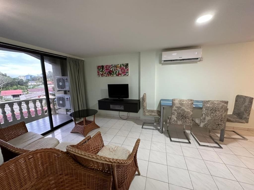 ¡Te damos la bienvenida a este acogedor estudio en la isla de Pangkor! Perfecto para familias o grupos de hasta 4 personas, este espacioso estudio cuenta con 2 camas tamaño queen y una ubicación privilegiada con vistas a la piscina. Disfruta de un rápido acceso a la playa, los restaurantes locales y las tiendas, todo a pocos pasos. Ubicación privilegiada: - A 2 minutos a pie de la playa. - A 500 metros de restaurantes de mariscos, puestos de comida malaya, supermercados y tiendas libres de impuestos. - A 5 minutos en coche de la terminal de ferris.