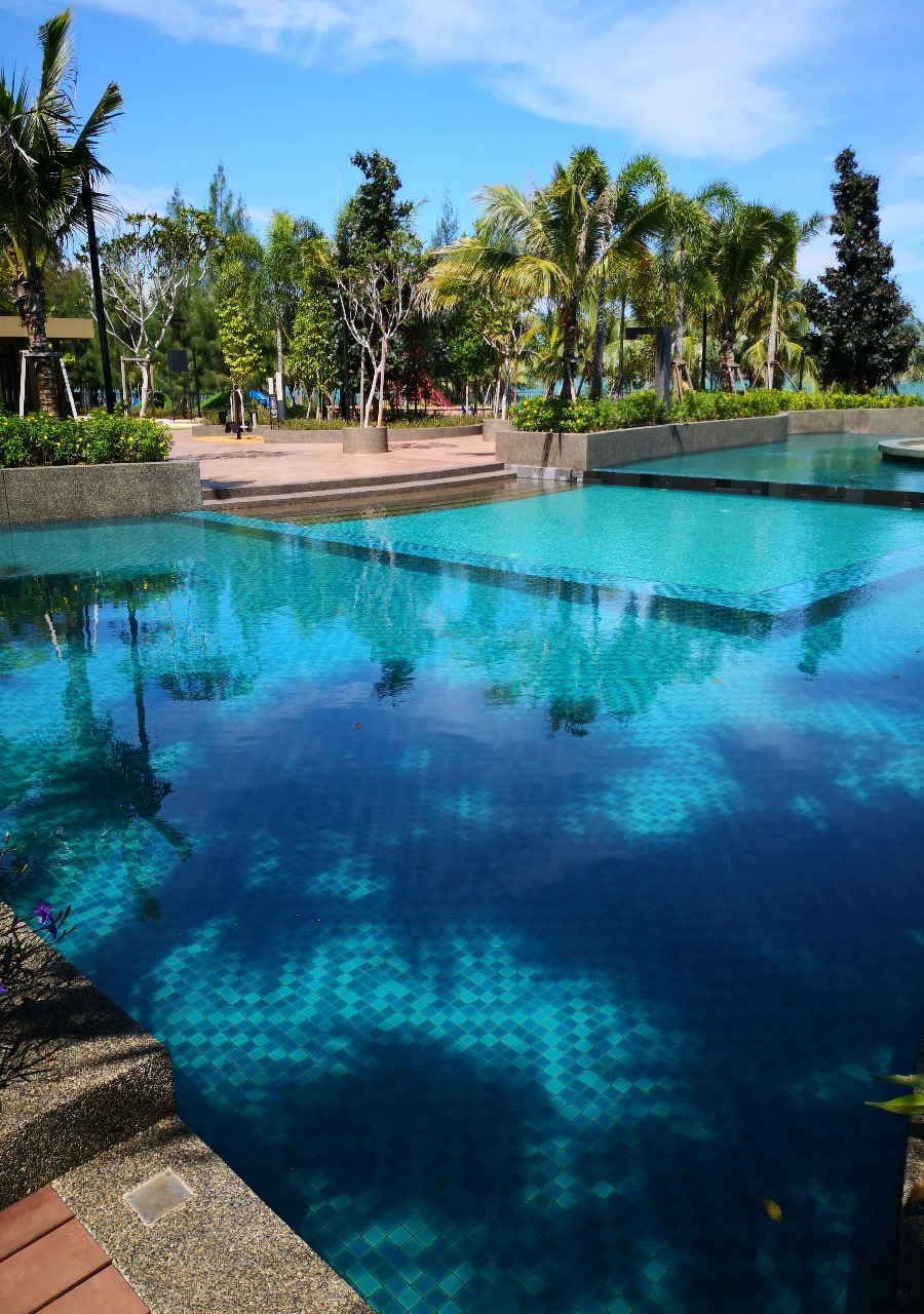 Bring the whole family to experience this great place. Enjoy the magnificent pool view and beach view from the balcony of your room. This cozy place can fit up to 4 persons with: - 1 queen sized bed & 1 bedroom with single sized bed - 1 bathroom - Kitchen with fridge, microwave oven and kettle - Dining area - Living area (Enjoy the entertainment from NETFLIX and Youtube) - Free Wifi - Washing machine with dryer - Iron Check in time: 3.00 pm Check out time: 12.00 pm