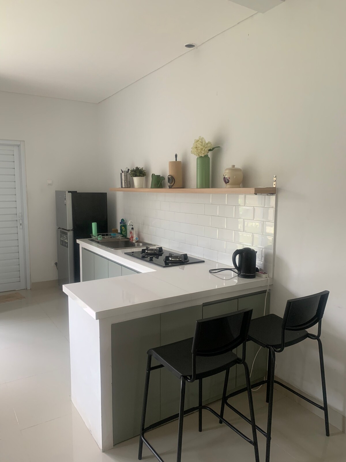 Disfruta de una estancia tranquila, privada y cómoda Rodeada de un entorno natural verde y aire fresco, esta villa es la opción perfecta para unas vacaciones en casa, una luna de miel, unas vacaciones relajantes o para pasar tiempo de calidad con una familia pequeña. ⸻ Instalaciones de la villa • Cama king adicional (200 x 200) • Televisor inteligente (compatible con Netflix) • Wifi gratuito • Dispensador de agua. • Refrigerador. • Calentador de agua • Bañera • Artículos de aseo • Mesa de comedor • Despensa pequeña para cocinar de forma sencilla • Utensilios para comer • Secador de pelo