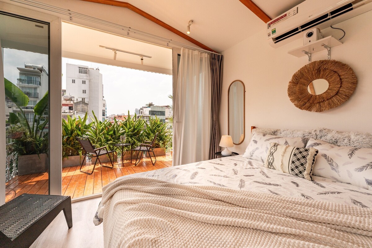 This is a house located right in the heart of Hanoi's Old Quarter, designed in a boho style with natural light. You will have a space filled with greenery and a spacious balcony overlooking our tropical garden aảea. Your comfort is our top priority. You can make use of the entire house, including the bedroom, kitchen, living room, small garden area, and laundry space. We want you to feel like you're in your own home.