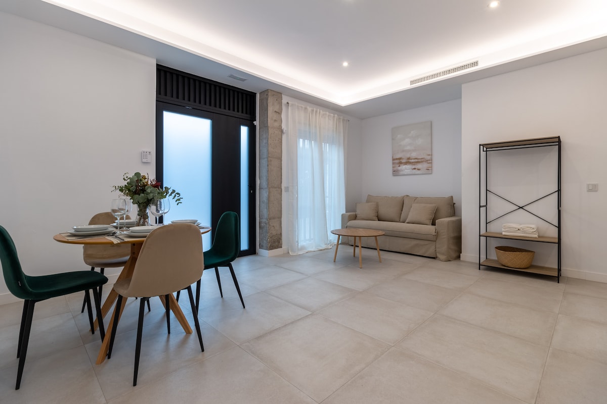 Tras adentrarte en las calles sinuosas de la ciudad patrimonial, te encuentras con el conjunto de alojamientos, en una zona muy tranquila llena de encanto. Una vez alcanzado el primer patio de arcadas, columnas y empedrado, tras haber pasado el zaguán-recepción de entrada, su apartamento se encontrará pasado un arco de acceso al otro gran patio que conforma este edificio de gran valor arquitectónico tradicional. <br>