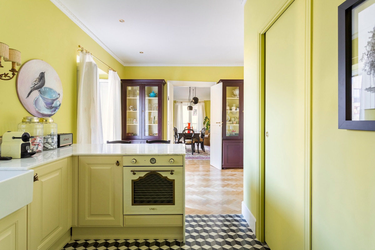 El apartamento está a pocos pasos de la estación central y de las zonas más animadas y populares de la ciudad. Es un hogar real, moldeado a lo largo de los años con amor, soledad, alegría y nostalgia. Cada pared, puerta y mueble lleva un pedazo de esa historia pintada a mano por mí. Mi corazón está dividido entre Palermo y un lugar muy, muy lejano. A menudo viajo allí con mi perra Dolores, y es entonces cuando abro mi casa en Palermo para ti. Trátalo como lo harías con la casa de un viejo amigo.