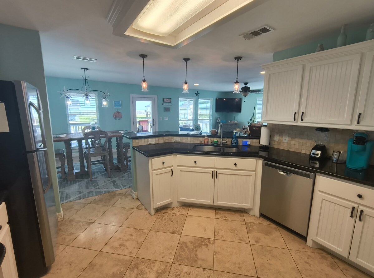 A canal front, home with a a private dock, two patios with two kayaks, two paddleboards for you to paddle to watch the breathtaking sunsets. Located on the beautiful west end of Galveston Island, one canal from West Bay, fish right off your private dock with green lights! This waterfront space sleeps 12 comfortably, sits on the beautiful canal in the desirable Terramar Beach Subdivision and offers easy proximity to both the Bay and to the Beach. Private boat ramp and neighborhood pool.