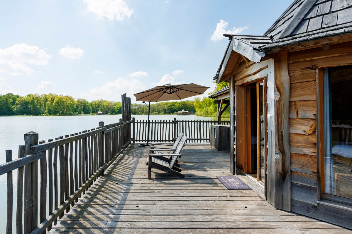 Al final del estanque, se encontrará con esta magnífica cabaña flotante y penetrará en el entorno salvaje del lugar para vivir plenamente la experiencia de las cabañas Coucoo Grands Reflets. Después de un paseo en barco para acceder a su nido, sumérjase en su baño nórdico para un puro momento de relajación en las tranquilas aguas del estanque. ¡La terraza de 360° de la cabaña Spa Sauvage le permitirá disfrutar plenamente del panorama!