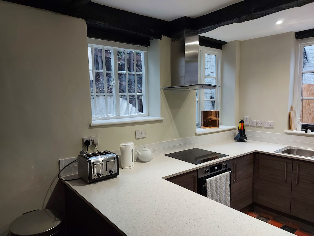 Te damos la bienvenida a Two Back of Avon. Una hermosa y única casa de principios del siglo XVIII construida en 1712. Este es uno de los muchos edificios históricos de Tewkesbury. Incorpora uno de los famosos callejones de Tewkesbury. Two Back of Avon ha sido cuidadosamente renovado recientemente. Ahora es una encantadora, cálida y cómoda casa grande ubicada en 3 pisos con vigas expuestas y gran carácter. de la sala de recepción principal, cocina/comedor, 4 dormitorios y 2 baños con ducha. Esta propiedad tendría capacidad para 9 personas.