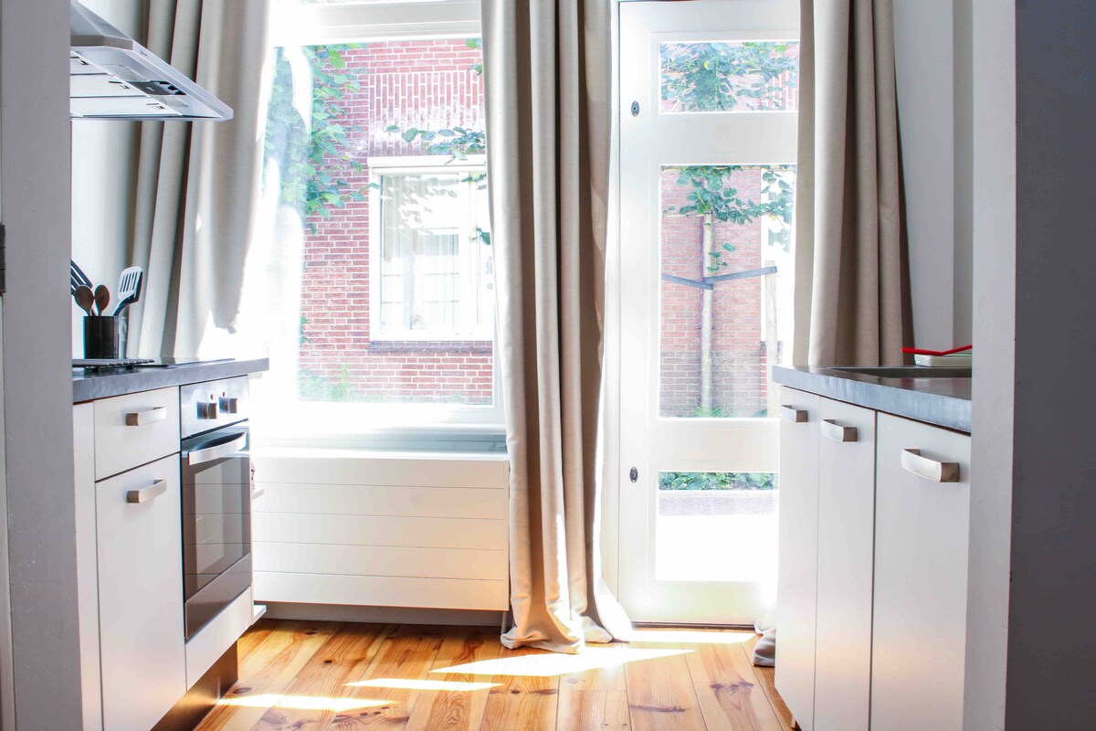 Amplio apartamento (de 1 a 4 personas) en la PLANTA BAJA de una hermosa casa de canal ubicada en un tranquilo y hermoso canal en el centro histórico de Haarlem. Los 2 DORMITORIOS tienen vistas a un JARDÍN verde y tranquilo. A solo unos minutos a pie de todos los servicios, incluyendo: restaurantes, bares, tiendas, cines, teatro, sala de conciertos, museos, mercados y alquiler de barcos. Estación de tren y autobús: 10 minutos a pie. Ámsterdam: 15 min en tren. Zandvoort (playa): 10 min en tren. Zandvoort (Circuito): 20 min en autobús.