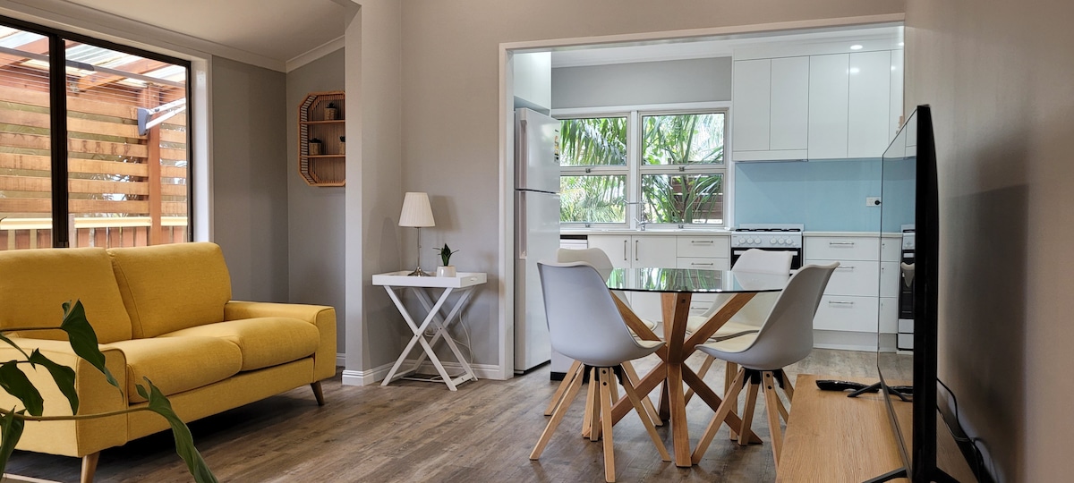 Welcome to our studio apartment. Our place is perfect for people coming for holiday, short term work , work placement or study. There's a brand new kitchen, comfy bed, study desk, air-condition and smart TV for your convenience. There is no washing machine in the unit, you will be able to use the one inside of the main house. (Please read the house rules there are some useful tips/information for you. Photo description also have some information.) Thank you :)