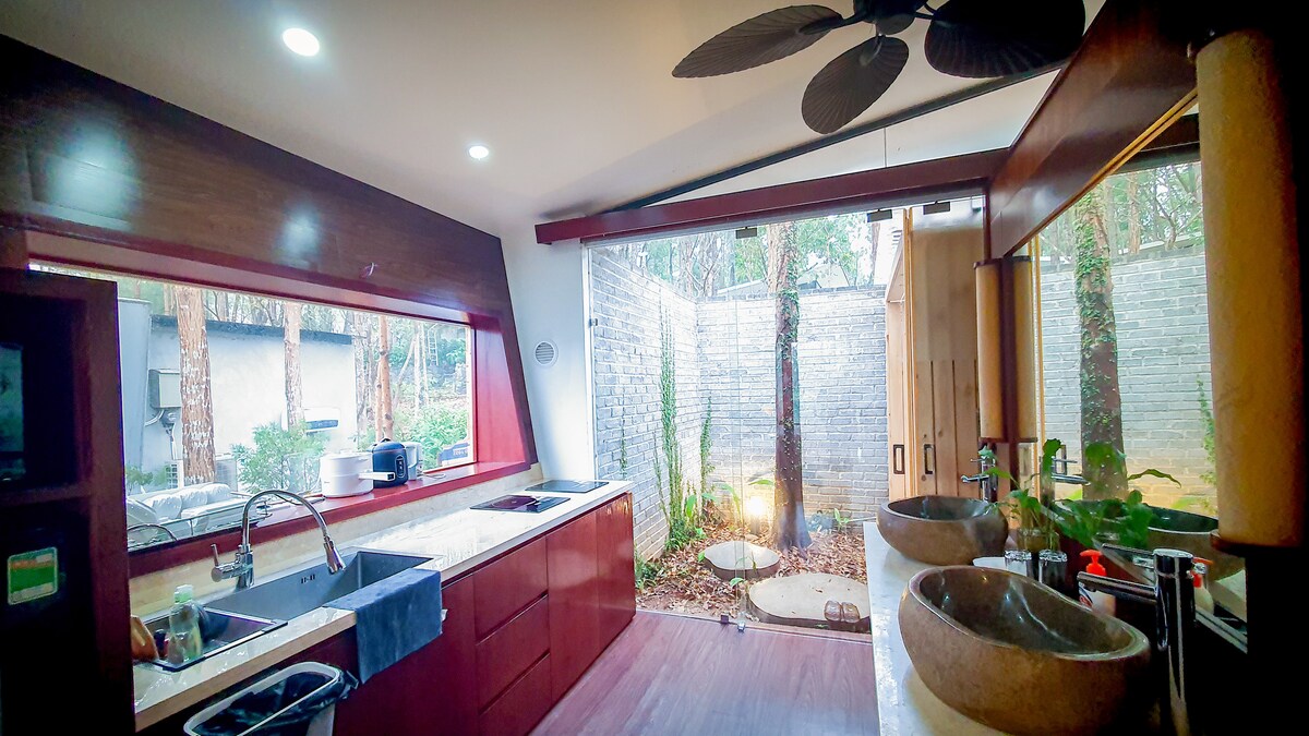 Situado en el corazón de Lang Hao Huc, rodeado de muchas rosas, árboles frutales tropicales y verduras. Los pequeños arroyos de primavera cerca con 247 sonidos relajantes son, además. Piscina de 4 estaciones con vistas impresionantes, espacio de trabajo de 150 m2 con vista panorámica del valle y el lago Nui Coc. Los platos locales con ingredientes de la granja a la mesa siempre están listos para pedir. No se permite fumar, se admiten mascotas. Las bicicletas, SUP y excursiones diarias se proporcionan con gastos adicionales.