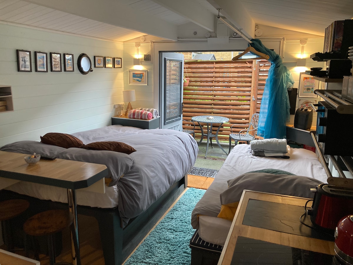 Habitación de jardín de lujo construida con propósito con baño con ducha a unos 15 minutos a pie del mar, el centro de la ciudad y la estación de tren con conexiones a Whitstable, Margate, Ramsgate y Faversham. La ciudad histórica de Canterbury está a 20 minutos en coche. Aparcamiento gratuito en la calle. Adecuado para personas que viajan solas y parejas. Ofrecemos tetera y cafetera (cafetera Nespresso). TV y conexión wifi gratuita. Mininevera. Un uso gratuito de la sauna de barril de leña, tarifa adicional por sesiones adicionales pagaderas directamente.