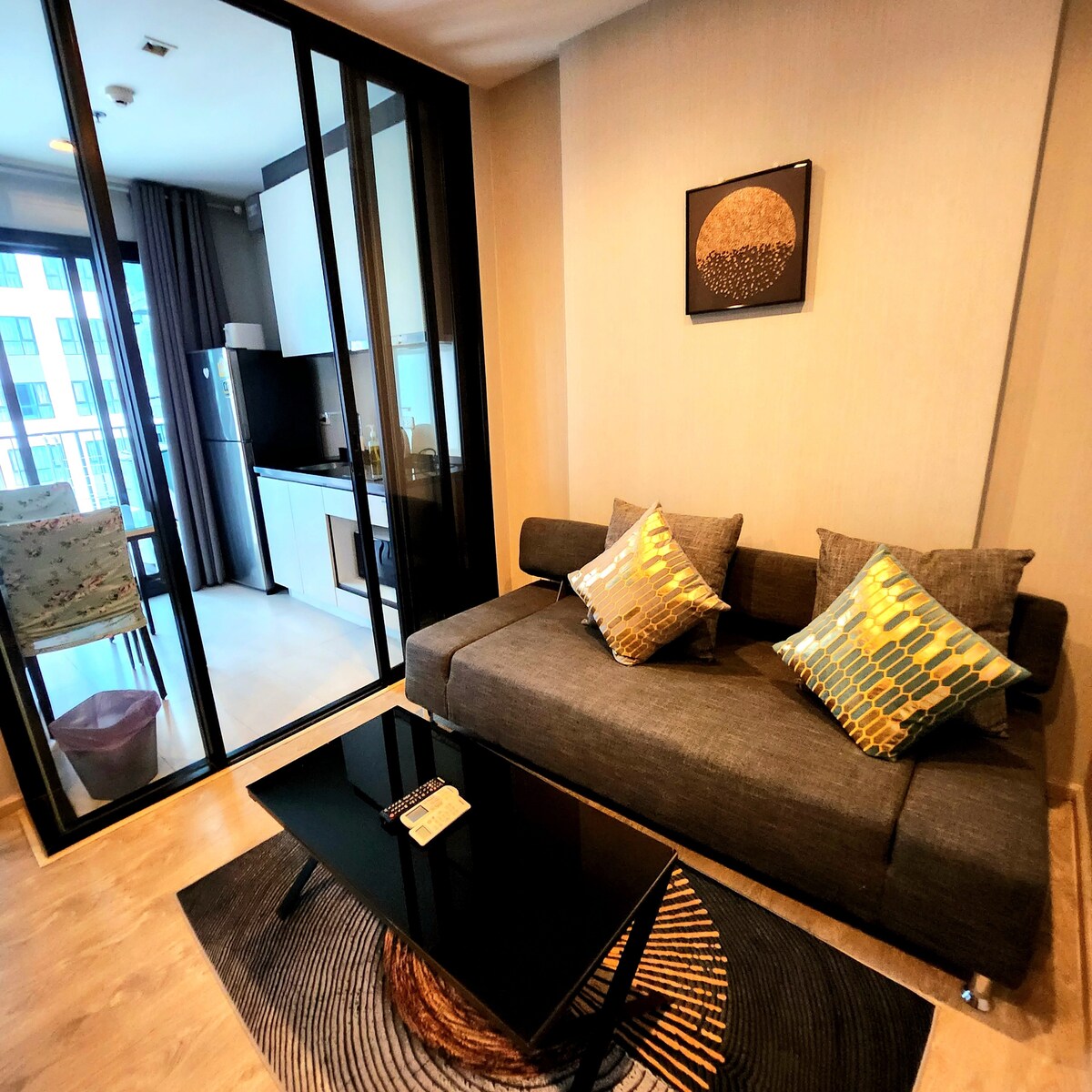 ¡Bienvenido a tu escapada recientemente renovada en el corazón de Pattaya! Este moderno condominio de 1 dormitorio acaba de ser renovado con estilo con un diseño fresco y contemporáneo, que ofrece comodidad a nivel de hotel con la privacidad de tu propio espacio. Perfecto para parejas, nómadas digitales o viajeros de vacaciones que desean una estancia luminosa, limpia y tranquila a solo unos pasos de la playa. Sala de estar de planta abierta con televisión inteligente y sofá Cocina totalmente equipada (microondas, nevera, hervidor, utensilios).