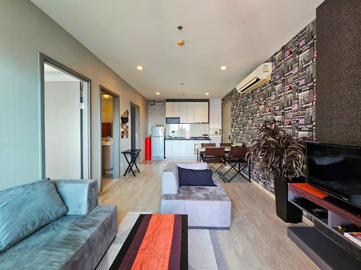 Apartamento de moda en el centro de Pattaya con piscina infinita, cerca de la playa, de centros comerciales y de sitios para comer, beber y divertirse