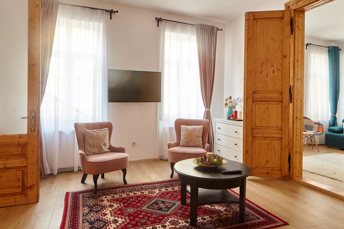 Find your refuge in the center of Brasov, in the quiet neighborhood of Scheii. The location merges the luxury of living in the middle of the city, with the serenity of nature. The icing on the cake of this 5-studio villa is the 31 m² rooftop terrace (COMMON / SHARED SPACE) from which you can admire the beautiful city’s emblem: Tampa mountain and Poiana Brasov.