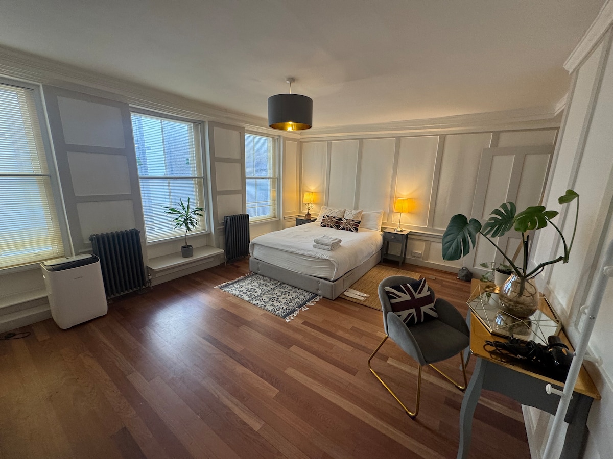 Disfruta del encanto histórico y la elegancia moderna en este apartamento tipo estudio recién reformado, ubicado en un edificio con 250 años de historia. La insonorización garantiza una estancia tranquila, mientras que tu propia cocina completa y baño privado de lujo te permiten desconectar y relajarte. Nuestra ubicación es inmejorable. Ubicado en una calle tranquila junto a Leicester Square, estás a pocos minutos de las mejores zonas, como el West End y Soho, con excelentes conexiones de transporte para futuros viajes. Haz de nosotros tu base y pasa más tiempo disfrutando de Londres.
