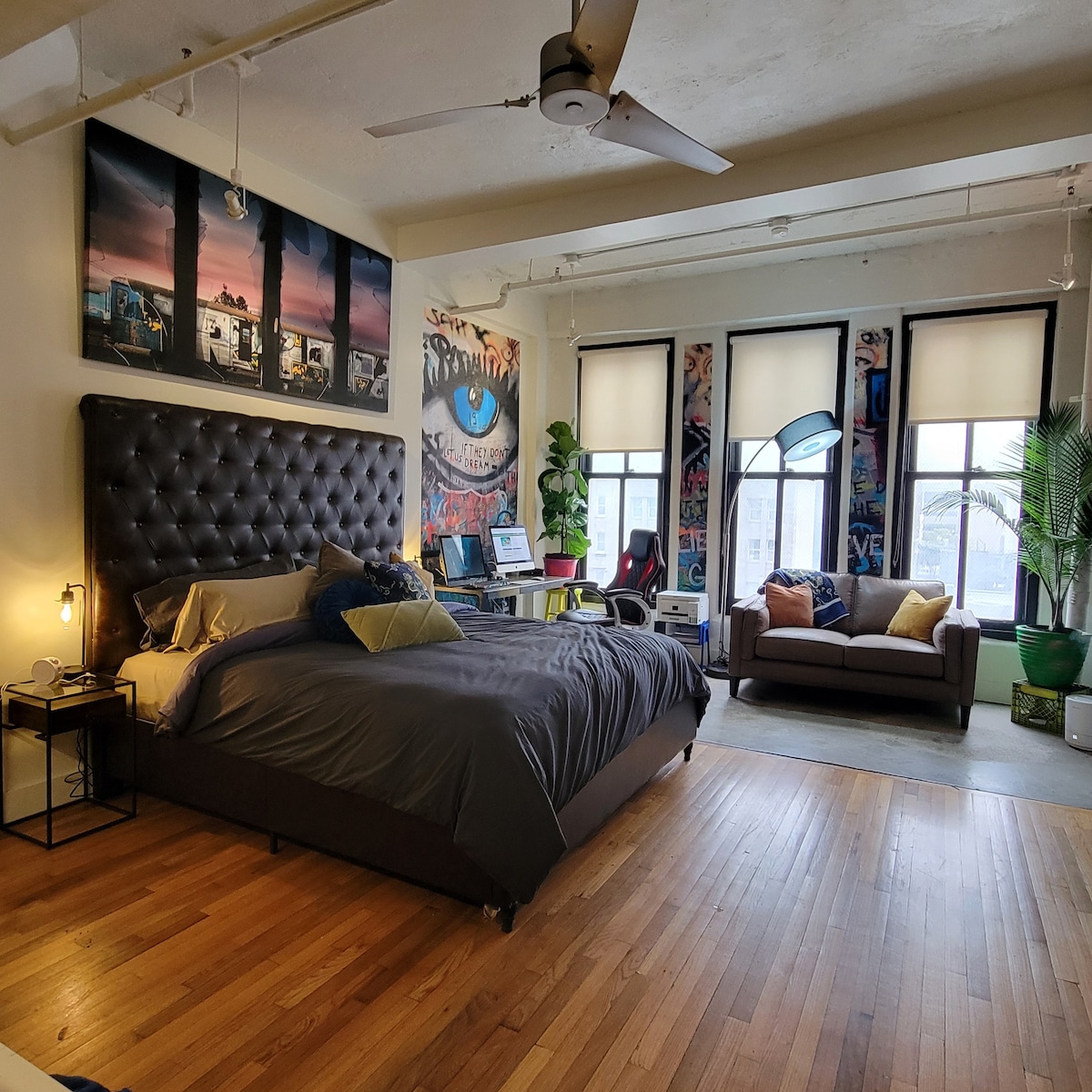 Donde la audacia de Tarantino en los años 90 se combina con el lujo refinado de los años 20. Este mirador en el quinto piso no es solo un alojamiento; es una escena de película. Un estudio de alto contraste que combina encanto ecléctico con hormigón personalizado y un toque de graffiti. Juega a la PS5, cocina a lo grande o trabaja con la conexión wifi de fibra y el iMac. Refúgiese en una cama tamaño king con sábanas naturales que le permitirán dormir como un bebé. Es una experiencia entre el 1 % de las mejores: un refugio bohemio, cuidadosamente seleccionado y con estilo, ubicado sobre el bullicio de Dallas. Tu loft de superhéroe te espera. 🖤