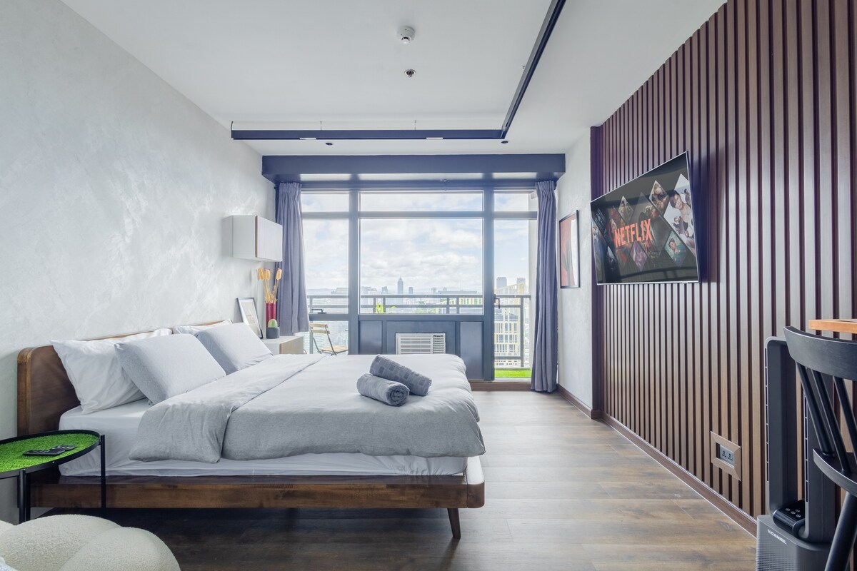 Amplio, propiedad privada en el corazón de Poblacion, Makati: Sinceramente, de alta calidad, preparado para tu estancia hogareña. Estudio de más de 32 metros cuadrados, desinfectado, limpiado con aspiradora y fregona, bastante, aire acondicionado inverter, bañera, ropa de cama y toallas bien preparadas, agua potable, casi como en casa. A pocos minutos a pie: ¡distrito financiero de Makati, centros comerciales Rockwell/Century, buenos restaurantes y la diversa vida nocturna del famoso barrio de Poblacion! [Por favor, «consúltanos» primero o reserva proporcionando fotos de todos los documentos de identificación oficiales y tarjetas de vacunación de los huéspedes para la entrada al vestíbulo.]