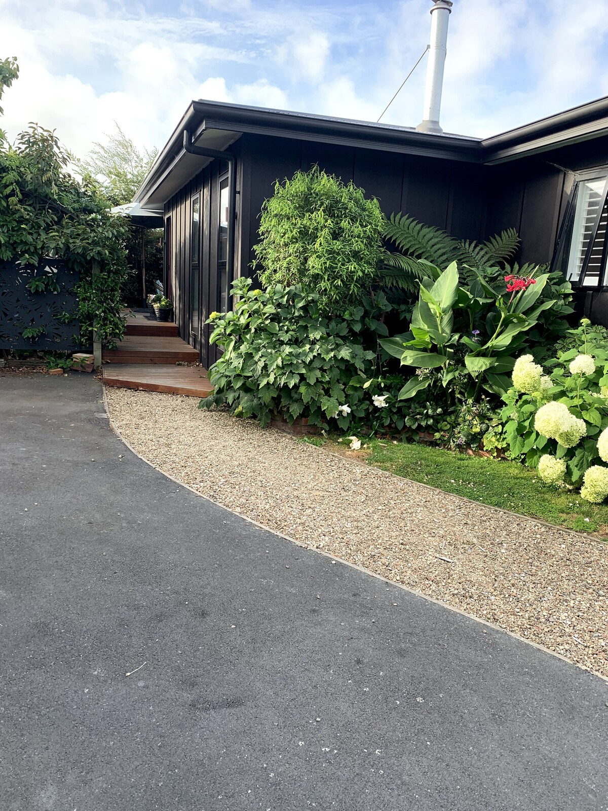 A 2,7 km de Te Kaha (One NZ Stadium). ESQUIADORES - Ciclistas - Bienvenida Este es un espacio tranquilo y relajante de planta abierta de 1/4 de acre cerca de la ciudad central. El dormitorio, la sala de estar y la cocina ocupan un espacio abierto. Se puede preparar un cómodo sofá cama, pero esto incurre en un costo de $25 por noche. Tienes acceso a un jardín compartido, arbustos, flores, helechos y piscina de spa ubicado en el helecho. Te invitamos a dejar una BOLSA/bicicleta y estas se pueden CERRAR con llave.