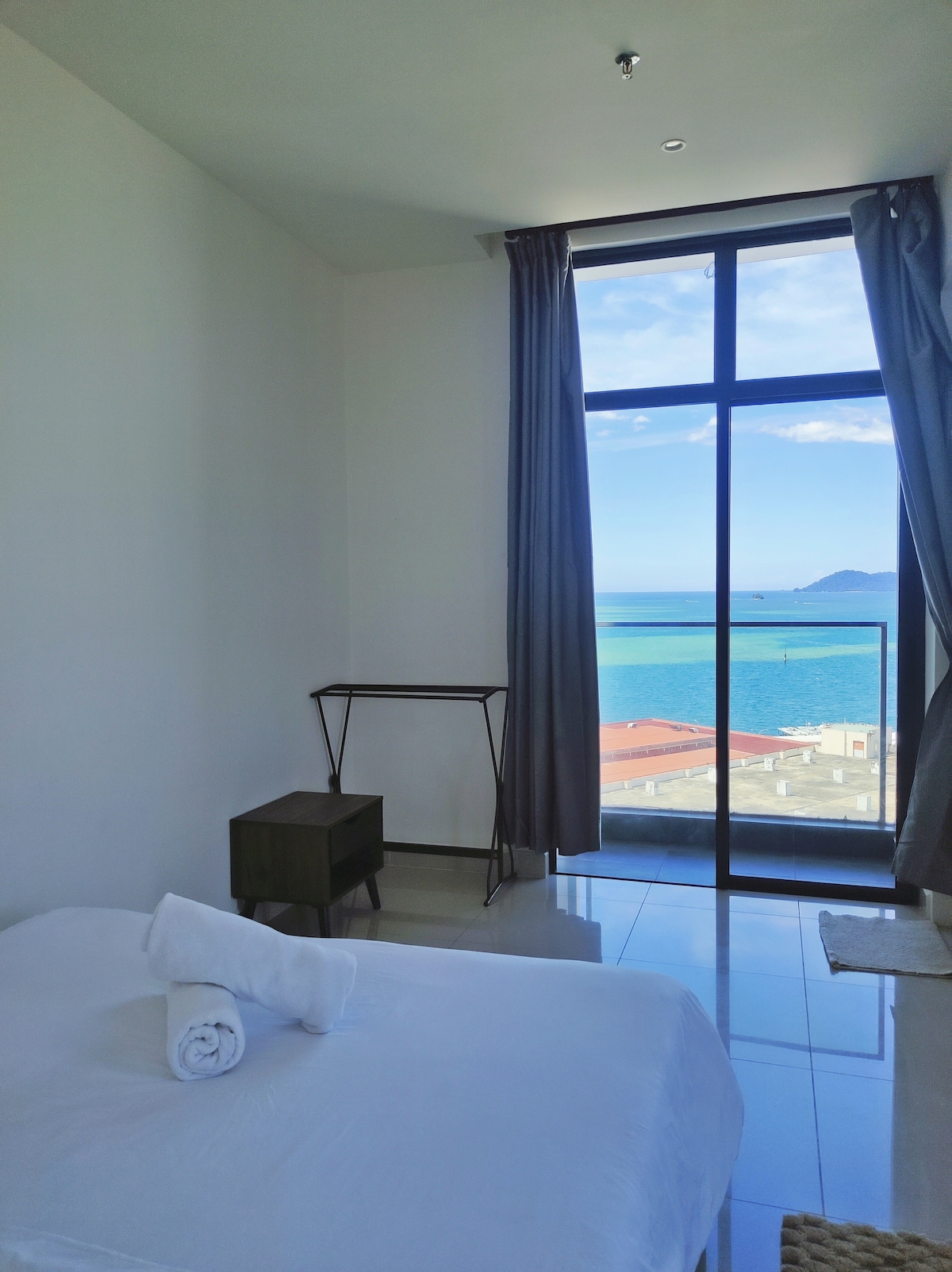 Modern 2 bedroom & 2 bathroom apartment just 3 mins by walk from Jesselton Jetty! Enjoy a rooftop pool with epic sunset views, gym access and all the comforts of home - right in the heart of Kota Kinabalu city. Perfect for island hopping trips, couples, families or small groups. 现代化的两卧两卫公寓,步行3只需要分钟就即可到达亚庇码头!屋顶泳池可欣赏壮丽的日落美景,健身房设施齐全,尽享居家舒适,就在亚庇市中心。非常适合环岛游、情侣、家庭或小团体入住。