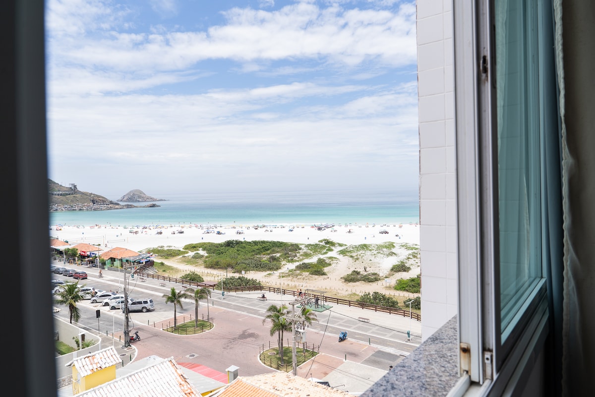 Fica de frente à praia do canto, Orla Bardot, onde fica os melhores restaurantes, lojas, boates, transporte aquático para todas as praias, sem a necessidade de sair de carro, linda vista para o Mar, por do Sol.