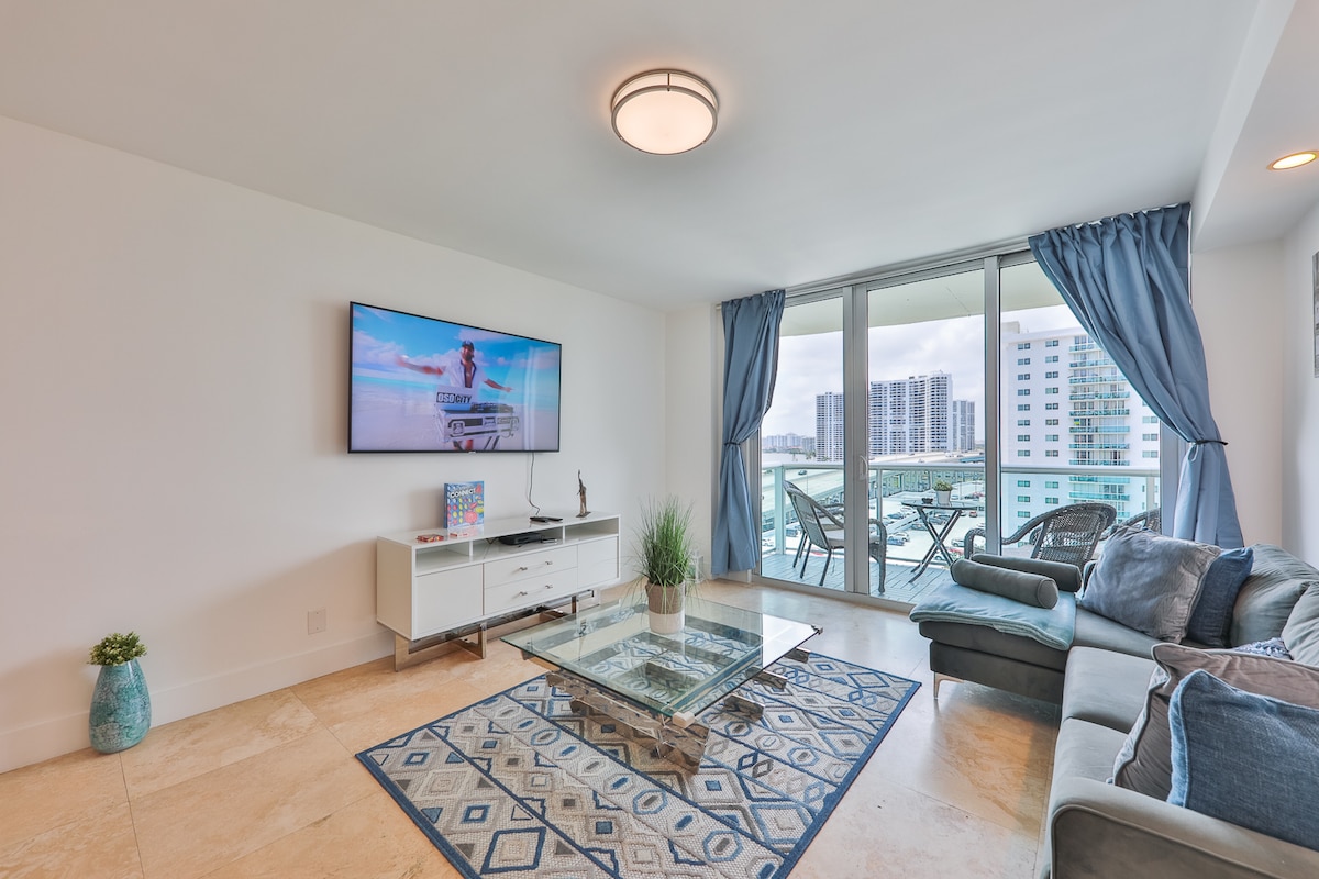 Solo un aviso, de acuerdo con las reglas del edificio, el huésped principal debe tener al menos 21 años. Bienvenido a tu 1BR totalmente amueblado en Marenas Resort. Este alojamiento frente a la playa se siente como tu propia suite de hotel privada con una cama tamaño king, sofá cama, baño privado y balcón privado con vistas al Atlántico y a la Intracoastal. Entra directamente en 2,5 millas de arena blanca, disfruta de las comodidades del centro vacacional y relájate con televisión inteligente, wifi rápido, cocina completa y lavandería en la unidad. Cerca de todo lo que Miami tiene para ofrecer.