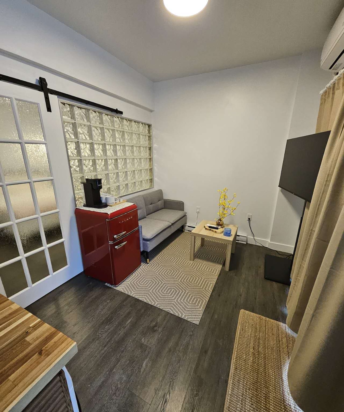 No matter where you are from, I believe this apartment will become your "ideal home" in Montreal. A transparent glass wall perfectly separates the bedroom and living room. The high-end retro Gray color runs through the entire bedroom, bringing you a sense of tranquility in the busy city. Ins style makes your journey full of freshness and naturalness. When you open the glass barn door in the early morning, the city welcomes you in its own unique way, allowing you to start a new journey from here.
