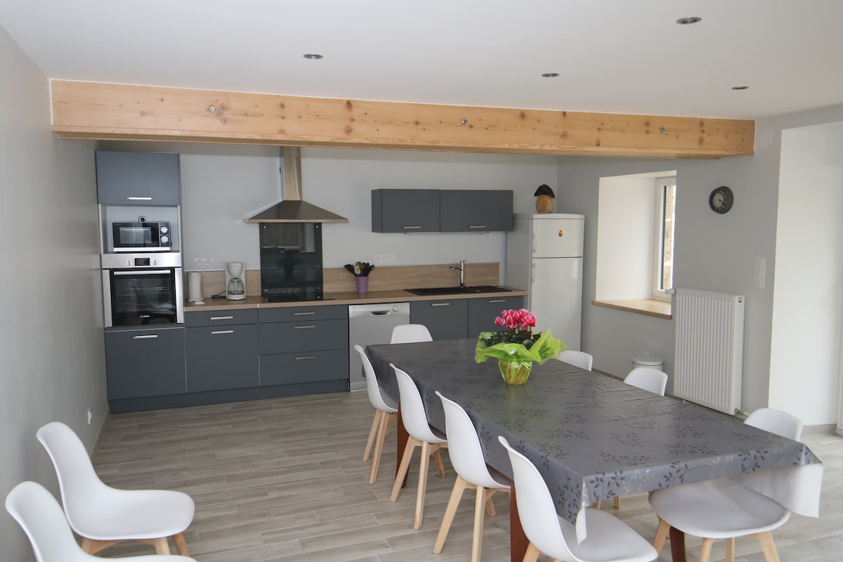 CASA para 6/8 personas, casa de planta baja, en el parque del Pilat. 3 dormitorios 2 con camas dobles 140 y 1 con cama de 120 + cama de 90. Cada habitación tiene su ducha italiana y lavabo. posibilidad de dos camas adicionales, ya que la cama convertible de 140 en la sala de estar. Terraza con mesas, sillas, parrilla y plancha. Cerca de las pistas de esquí de fondo del bessat. A 30 minutos de Saint-Étienne y a 50 minutos de Lyon. Varios senderos para practicar senderismo a los pies de la casa. Terraza soleada.