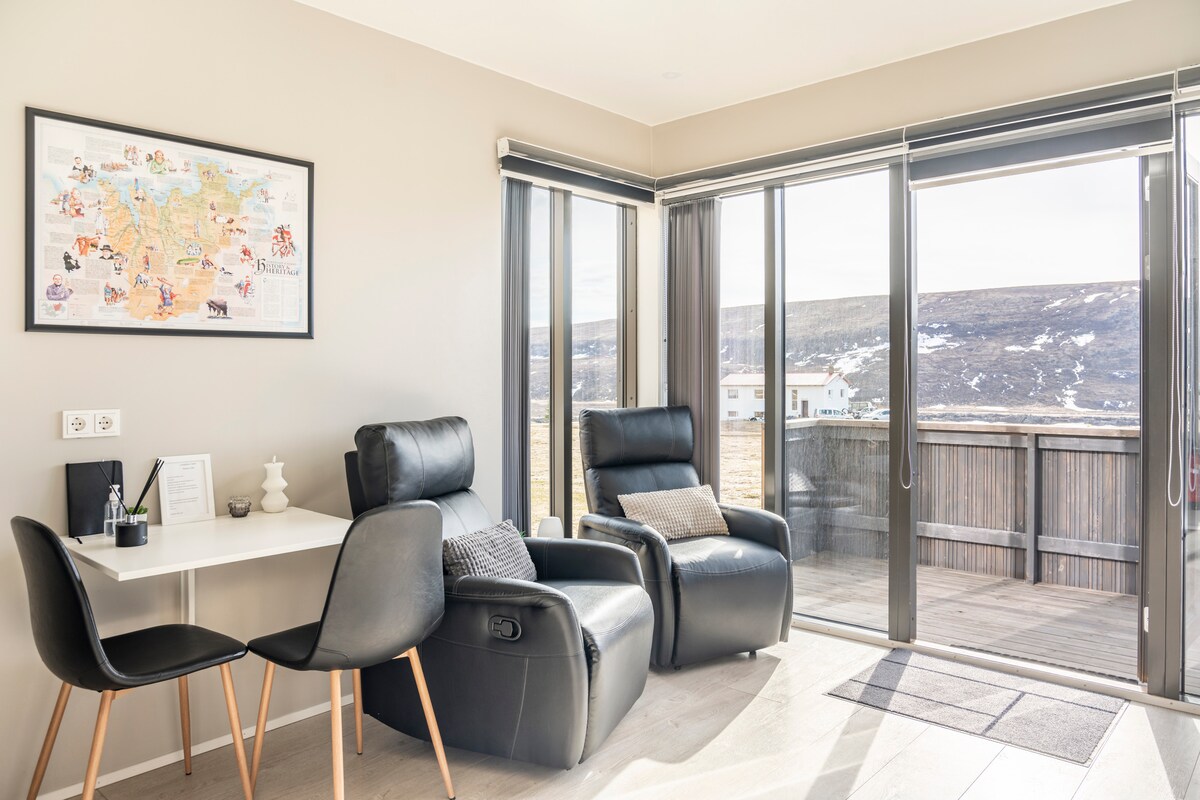 Nuestras lujosas casas de campo tienen todo lo que necesitas para tus vacaciones con familiares o amigos. Ubicadas a solo 5 km de Akureyri, nuestras casas de campo tienen unas vistas espectaculares de la ciudad. Tienes una sensación de campo en la montaña, pero con la comodidad de tener las tiendas y restaurantes cerca. Las casas de campo están muy cerca de la estación de esquí, y después de un día divertido puedes disfrutar de la gran televisión y calentar los pies en el piso climatizado o ir directamente al jacuzzi que está en cada una de las casas de campo. Hay 3 dormitorios (1 ma