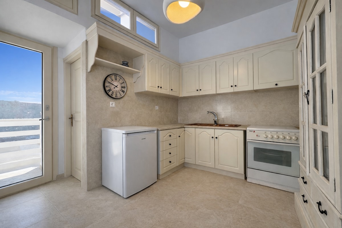 Our stunning Seaview apartment at the port of Naousa is a newly renovated two-bedroom flat located by the sea, overlooking the marina and Gulf of Naousa only a few meters away from the sandy beach of Piperi. A breath away from all the action, nightlife, shops, cafes, and restaurants the apartment is ideal for couples or small families looking for a comfortable stay while at the same time wanting to feel the vibes of the cosmopolitan center of Naousa while enjoying some breathtaking views!