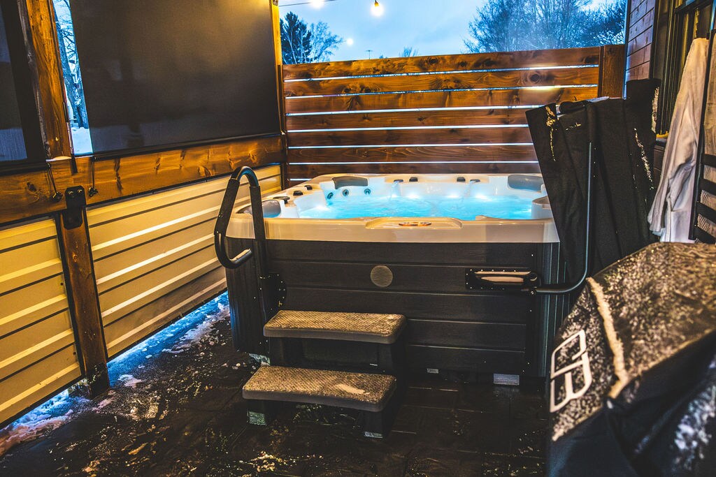Cabaña con sauna y cama tamaño king| Cerca de senderos para motos de nieve