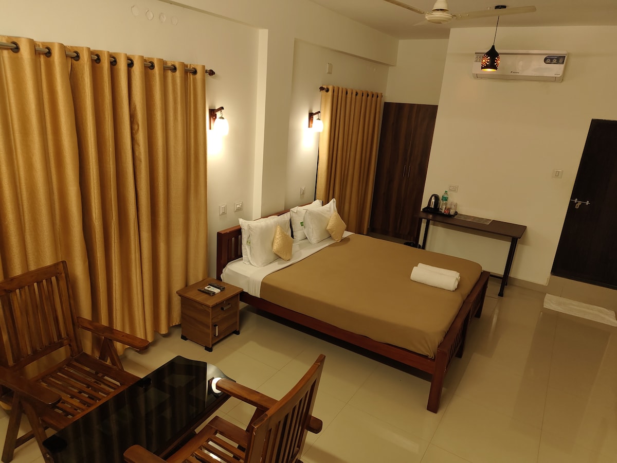 Te damos la bienvenida a Eleven Space Kochi, ubicado en Vazhakkala Kakkanad. Habitación a estrenar con aire acondicionado de 250 pies cuadrados. Distancia: a solo 2 km de Kakkanad, a 5 km del Infopark, a 4 km de Edapally y a 25 km del aeropuerto de Kochi. Ideal para parejas, profesionales de TI, familias y viajeros de negocios. Todas las habitaciones con aire acondicionado incluyen agua caliente, toallas, artículos de aseo personal, TV con conexión por cable, wifi gratuito y respaldo de energía. Ubicado en el centro de Ernakulam para una estancia cómoda y conveniente en Kochi. Servicio de cuidador las 24 HORAS, los 7 días de la semana.