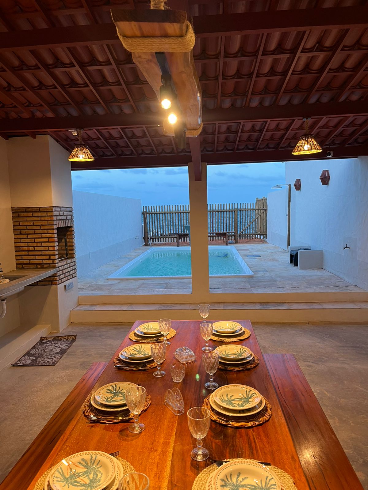 Relájate con tu familia en este acogedor paraíso. Casa en Praia da Vila Nova (Icapuí, Ceará), frente al mar, con espectaculares vistas de la costa y sus alrededores y escalera de acceso directo al mar. Cuenta con 5 suites con vistas privilegiadas al mar. Tiene capacidad para 10 personas. Casa ventilada con cocina bien equipada e integrada con la sala y el balcón. Zona exterior con amplio porche cubierto con mesa de comedor, mesa de juegos y sofá. Cuenta con pista de tenis de playa / voleibol y fútbol playa.