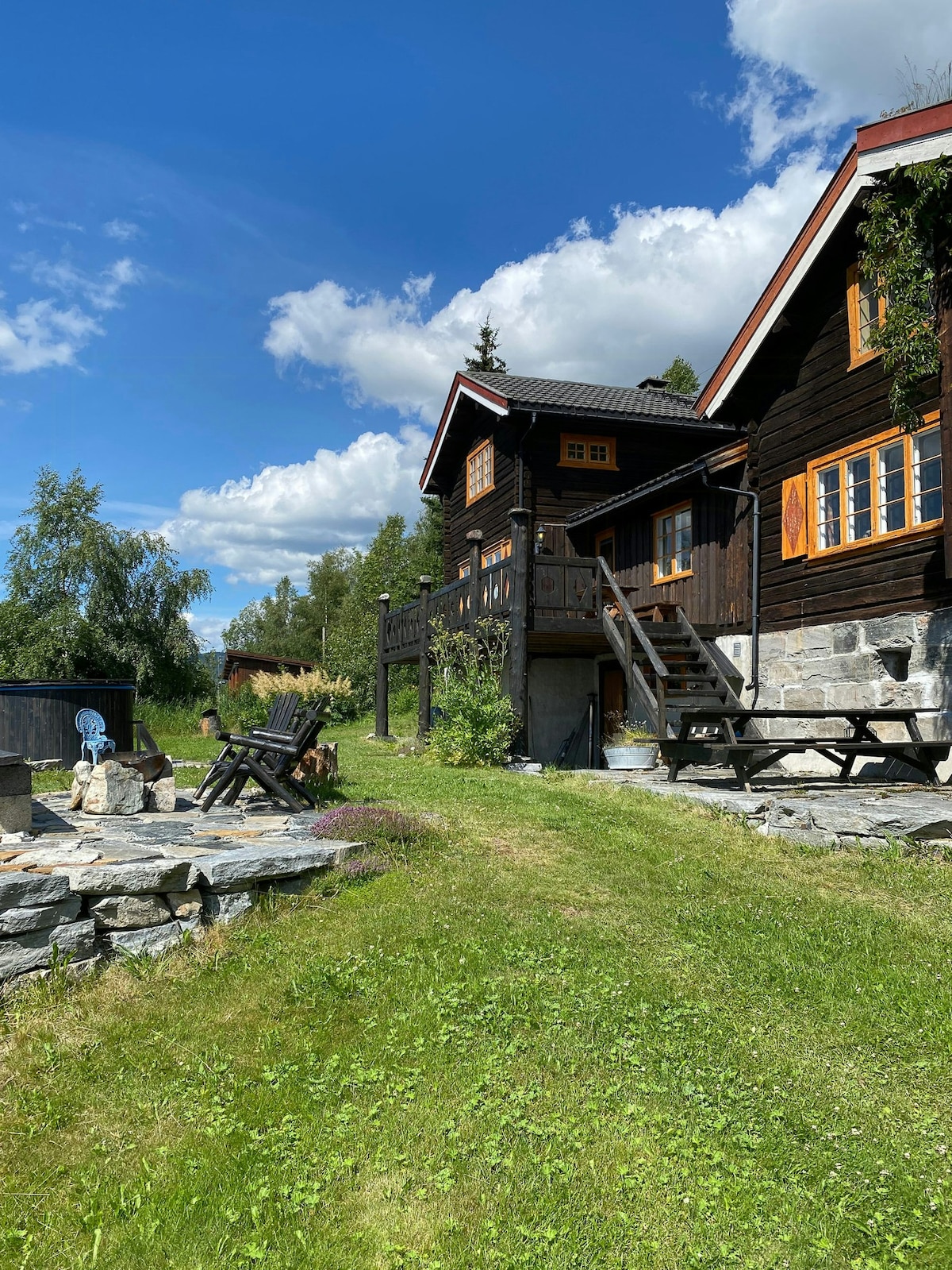 Aquí puede alojarse cerca de una de las instalaciones alpinas más grandes de Noruega (Gaustablikk) y experimentar senderismo de montaña, campo de golf, tierra de baño, centro ecuestre, experiencias históricas, museo, tiendas en Rjukan. La casa tiene vistas a uno de los picos montañosos más bellos de Noruega (Gaustadtoppen) y una bonita cascada en verano. La casa tiene buenas soluciones de habitaciones en tres pisos con literas familiares en las habitaciones. Cocina buena comida en nuestra gran cocina y diviértete en nuestra sala de actividades con equipos de ejercicio y juegos. Relájese en la sauna y en la silla de masaje.