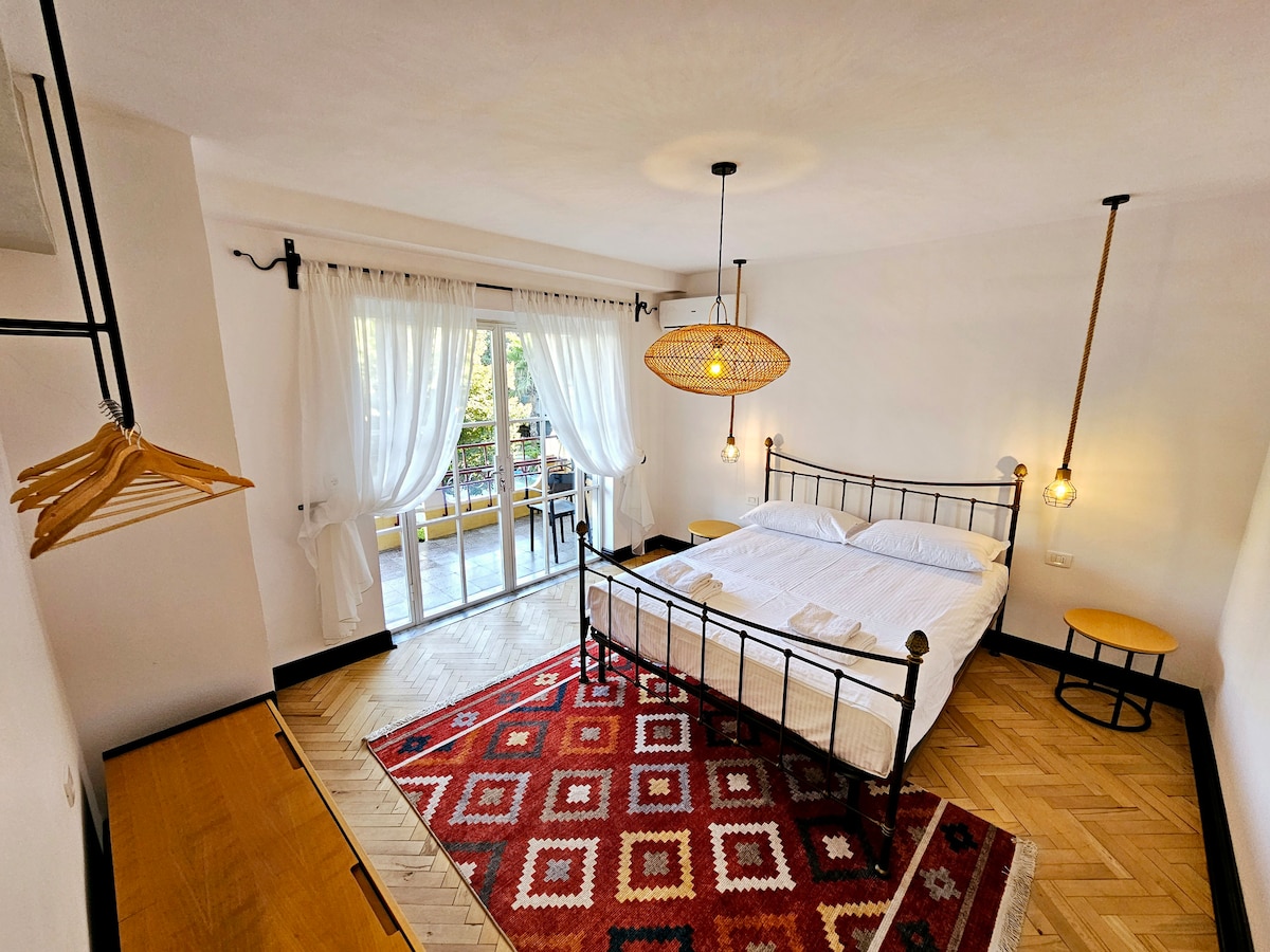 Su propio jardín privado en el corazón de Blloku. Planta baja con balcón, jardín con paredes verdes y un piano de verdad en el sala de estar. 3 dormitorios (cama tamaño king + 2 individuales + individual con escritorio + colchón de aire para el sexto huésped). Tiene una cocina totalmente equipada, desde cafetera hasta tetera, TV inteligente de 55 pulgadas y mucho más. A 3 minutos de Myslym Shyri, a 8 minutos de la plaza Skanderbeg, a 5 minutos del lago. Su anfitrión dirige la clase de cocina en Tirana — Pregunta por una experiencia práctica de cocina albanesa durante tu estadía.