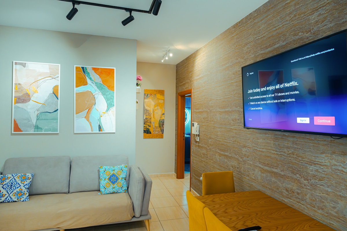 Todo nuevo y totalmente restaurado en abril de 2024. Al estar en la plaza Scanderbeg, es perfecto para los huéspedes. Hay una vista asombrosa de la puesta de sol y las montañas que lo hace único. Es espacioso, de unos 100 m2, y perfecto para una familia de 7 o 3 parejas. El barrio es tranquilo, lo que te permitirá disfrutar de tu tiempo. Si tu viaje es por vacaciones o trabajo, este es tu destino perfecto. El servicio de transporte al aeropuerto está a 5 minutos a pie del apartamento. Desde el apartamento podrás acceder fácilmente a todo.
