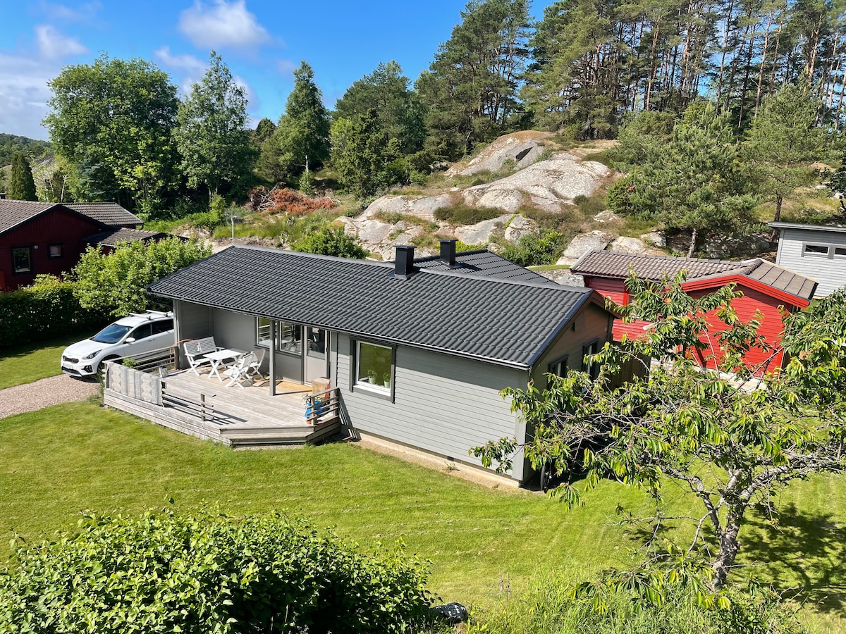 Una casa rural con una naturaleza fantástica naturaleza. Bienvenido a nuestro Torp, donde puedes vivir un poco aislado y privado y disfrutar del canto de los pájaros con el mar como vecino. Da un corto paseo por el bosque hasta nuestro embarcadero para tomar un café o algo refrescante. ¿Por qué no alquilar las bicicletas para darte un chapuzón en el mar? Lo que más nos gusta es cocinar juntos y disfrutar de la comida en la terraza, con vistas al bosque y al mar, mientras los niños juegan en el jardín con juguetes emocionantes. Instagram: villa.bestcoast_sweden