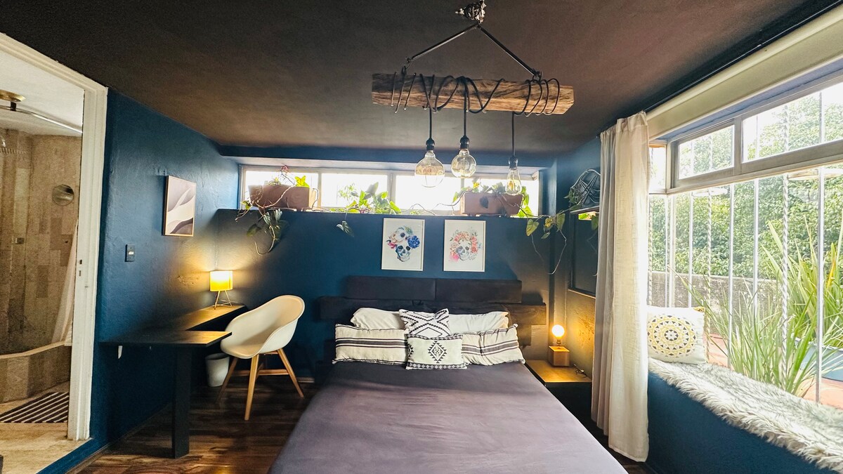 Casa con una recámara , con hermoso jardín japonés. Exclusivo para parejas o persona que busque descansar (no locación para eventos , vídeos , sed de fotografías ) Planta baja estilo industrial , primero y segundo nivel diseño japonés . completamente nuevo, totalmente equipado, con acabados de lujo. El alojamiento es completo para ti. Contamos con Estacionamiento a fuera del alojamiento (calle ). Una experiencia única en el corazón de San Angel . A tres cuadras del Restaurante San Angelin.