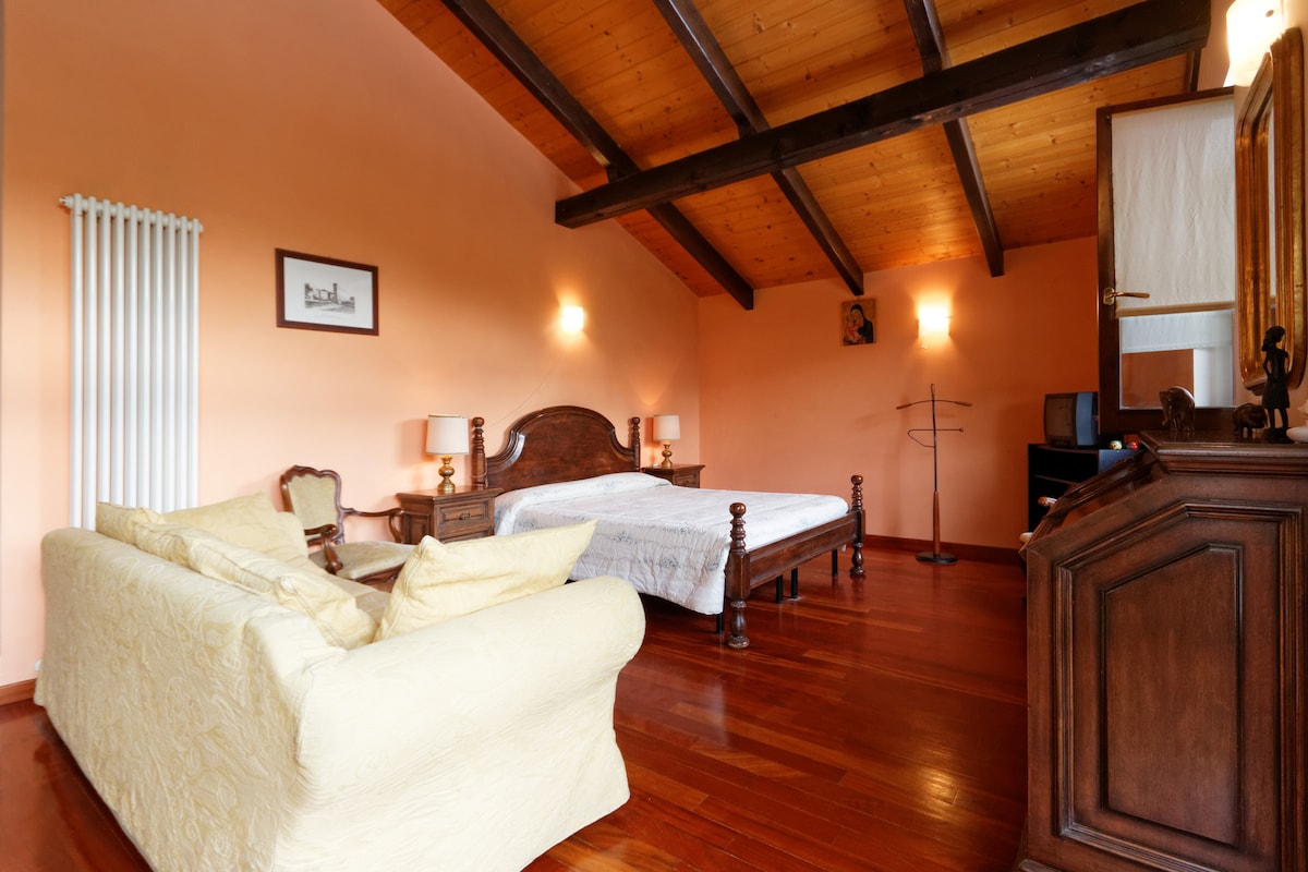 Nuestro apartamento está en una aldea del pueblo cercano, a solo 8 km de Biella. Forma parte de una granja renovada, justo en medio de bosques y prados. El piso está en la planta baja y tiene su propia entrada (separada del resto de la casa). Delante del piso hay un patio, con un cenador y barbacoa, donde vive nuestra perra (es muy amable). Por la mañana, es posible que te despiertes el gallo y las gallinas cantando.