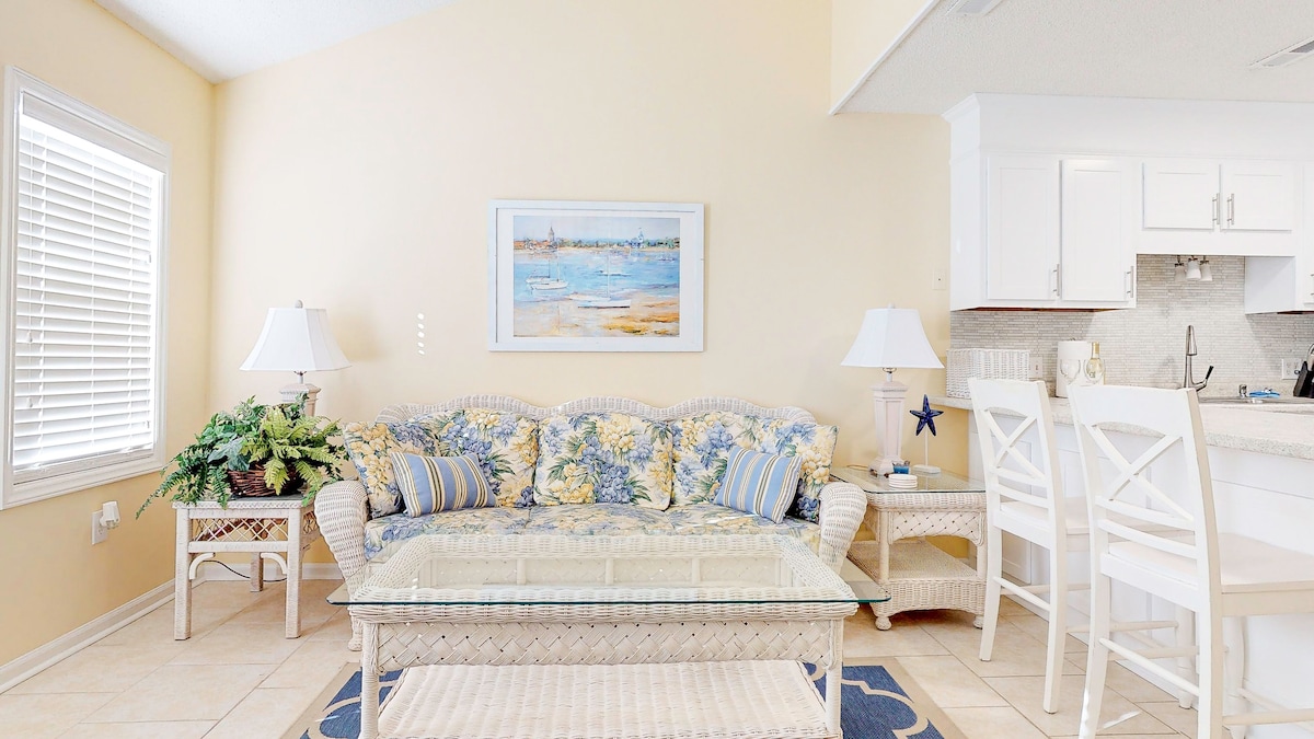 ¡Ven a buscar tu vitamina marina: sol, aire fresco y agua salada! Encantador apartamento frente al mar de 2 dormitorios y 1 baño con hermosas vistas desde la terraza privada y pasarela directamente a la playa. Perfecto para solteros, parejas o familias pequeñas. Camina hasta los mejores restaurantes y tiendas de Surf City. Todo a 5-10 minutos a pie. Fácil acceso al nuevo puente elevado. Todo el suelo es de vinilo. Todas las sábanas están incluidas. Además de paquete doméstico, parrilla de carbón y gas ¡y mucho más!
