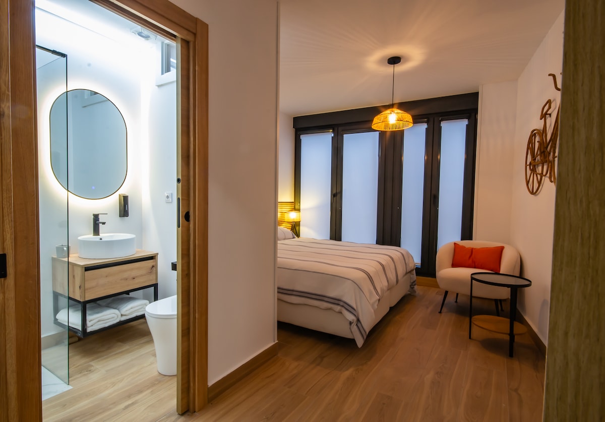 Este alojamiento se encuentra a menos de 5 minutos de la plaza mayor. Es muy luminoso y todas las habitaciones dan al exterior. A unos pasos tienes la ribera, un sitio precioso para pasear y encontrarse con la naturaleza. Las habitaciones son espaciosas, el baño principal es como una habitación más. La cocina está completa.