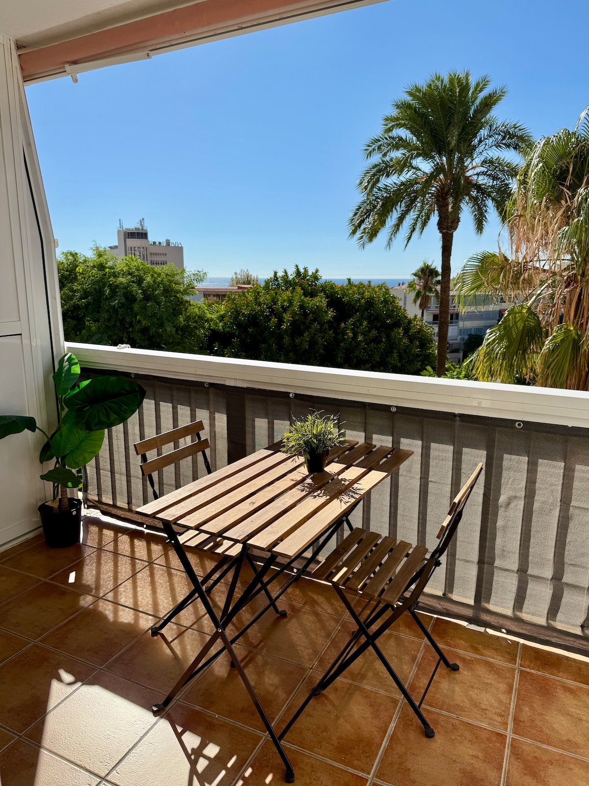 Elegante estudio en zona costera muy bien iluminado a 2 minutos de la playa andando, con vistas al mar, palmeras y ambiente muy relajado. En la Carihuela, a 10 minutos de Puerto Marina, cerca del centro de Torremolinos. Tren, bus y taxi muy cerca. Cocina bien iluminada y completa. Baño con todo lo necesario para tener una estancia muy agradable. Cama doble y sofá cama. Smart TV y Wi-Fi en un ambiente acogedor. Aire acondicionado. Dispone de cafetera, plancha, tostador, horno, frigorífico, etc