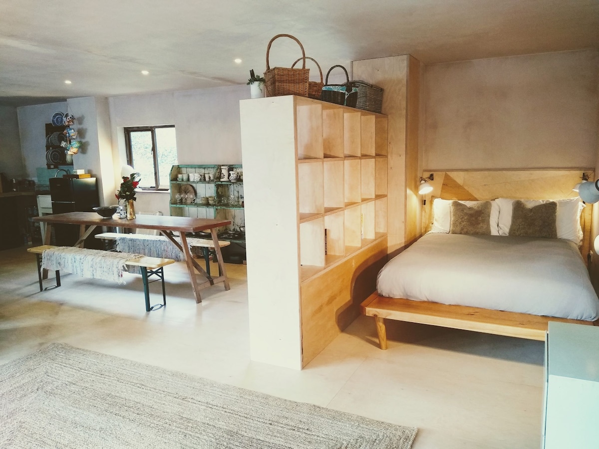 Nuestro estudio de madera es perfecto para aquellos que buscan una base mientras exploran Cornualles. Está situado en la parte inferior de nuestro jardín con hermosas vistas rurales, pero a solo 10 minutos en coche de la impresionante costa de North Cornish y a 2 minutos de la A30. El estudio tiene una cocina totalmente equipada con nevera y placa de gas, cama tamaño king y cuarto de ducha. Tiene su propia calefacción central, por lo que es encantador y acogedor, ¡incluso en invierno! Los huéspedes pueden sentarse fuera, en el patio, y disfrutar de las hermosas puestas de sol. Se admiten perros.
