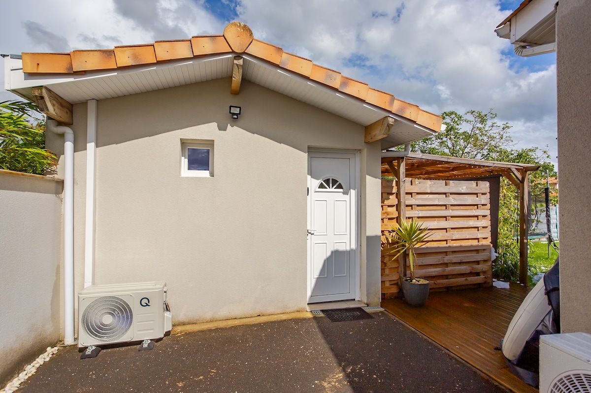 Nido del Jardín Encantador anexo independiente en nuestro jardín, ideal para 2 personas.Acogedor espacio con cama doble, cocina equipada, baño y aseo privados. Acceso independiente desde el lateral de la casa.Entorno tranquilo y verde, a 15 minutos de Burdeos. Wifi, ropa de cama y toallas de baño incluidas, fácil aparcamiento.Perfecto para una estadía relajante cerca de la ciudad.