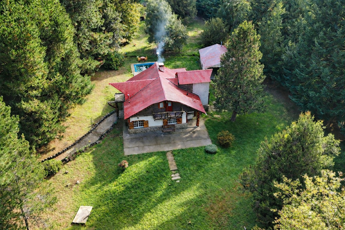 Relajate con tu familia o amigos en este tranquilo alojamiento ubicado a 5 km de Trevelin y Río Grande, 8 km de la Presa Hidroelectrica Futaleufú, 25 km de Esquel y 30 km del Parque Nacional Los Alerces. Disfrutá de un calmo ambiente rural con quincho completo con fogón y parrilla, y maravillate con las 4 hectáreas de parque con vista 360 a las cordilleras de Trevelin. Incluye calefacción central, cámaras de seguridad, Wi-Fi, piscina climatizada, y más servicios para una cómoda estadía.