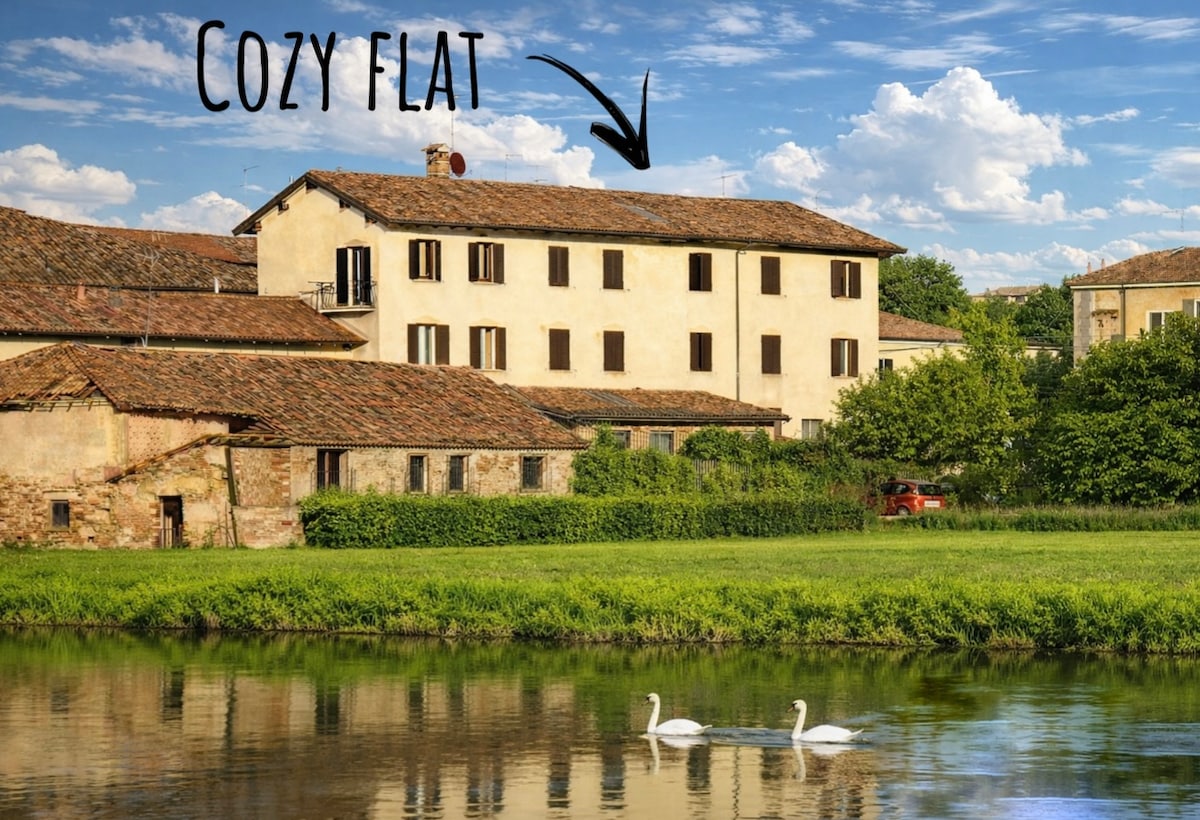 L'appartamento è un accogliente bilocale con travi in legno a vista in un tranquillo condominio a soli 10 minuti a piedi dal centro e a pochi passi dal supermercato. L'alloggio è posto al terzo piano e raggiungibile via ascensore. Vaprio si trova a metà strada tra Bergamo e Milano, a pochi minuti dalle uscite autostradali A4 di Trezzo sull'Adda e di Capriate e a soli 10 minuti d'auto dal Parco divertimenti Leolandia.
