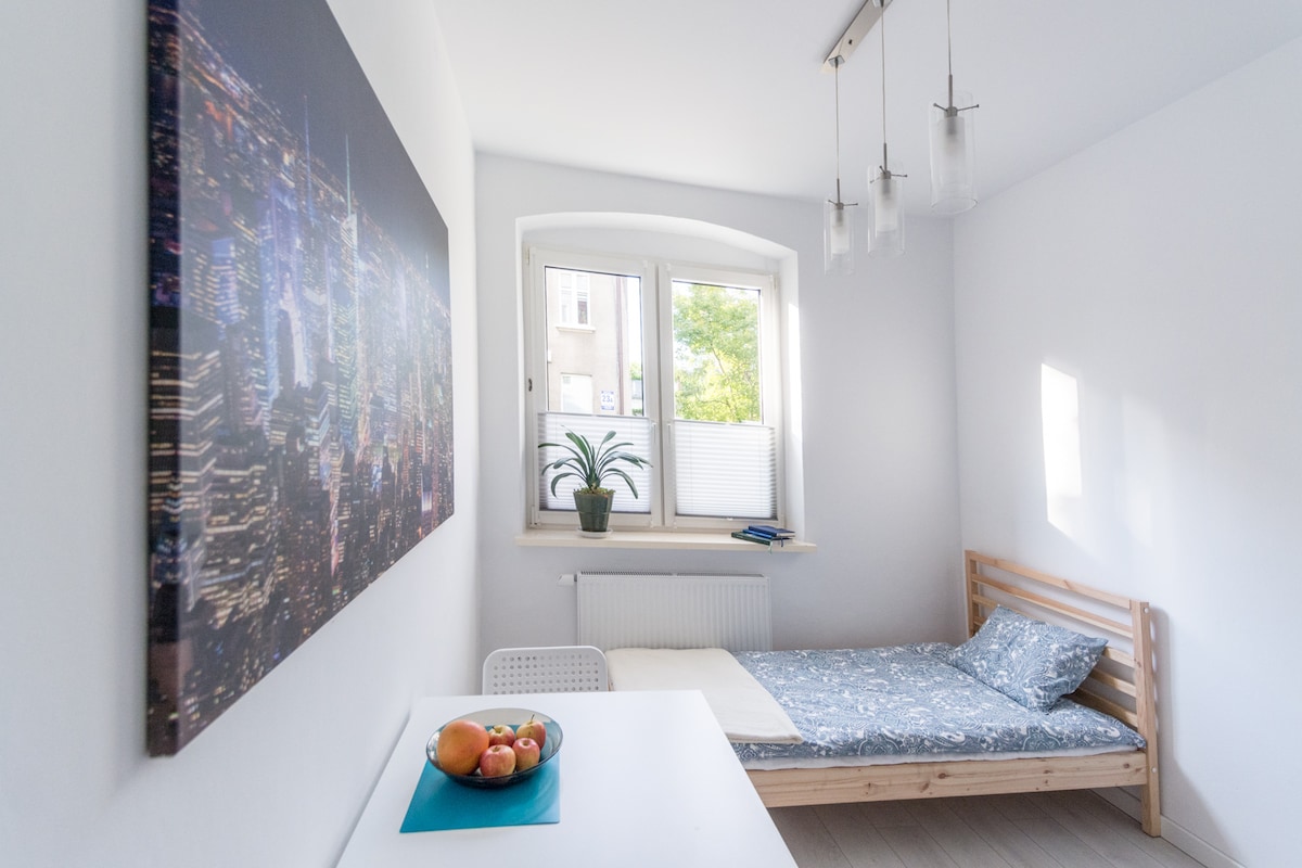 Przytulne mieszkanie na poddaszu, z pięknym widokiem, w samym sercu Starego Miasta. Komfortowe dla 1 lub 2 osób, idealne na zwiedzanie miasta, główne atrakcje w zasięgu ręki WiFi, wyposażona kuchnia, lodowka, pralka, wanna, ręczniki. Mieszkanie czyste i ciepłe. Dobra komunikacja, blisko przystanek tramwajowy, autobusowy, dworzec pkp i skm. Jesteśmy dostępni caly czas i służymy pomocą dla naszych gości. 4.piętro brak windy