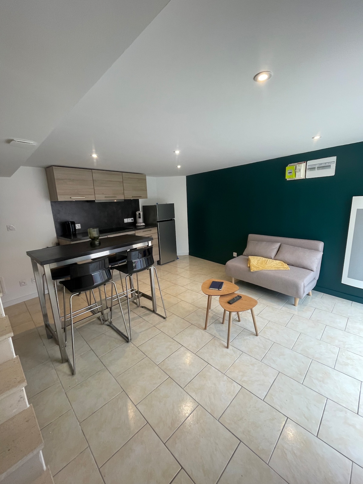 🏠 El apartamento se encuentra en el centro histórico, a dos pasos de la Fosse Dionne, el mercado cubierto y las tiendas. 🚗 Plaza de aparcamiento junto a la entrada 🚄 Estación de tren a 300 metros 🚲 Amplio espacio para bicicletas seguro 🍽 Una cocina semiabierta en una sala de estar cálida y luminosa. 🛌 Una habitación con aire acondicionado equipada con una cama tamaño queen con acceso directo al baño con todo lo necesario. ☀️ Una terraza con vistas a Saint Pierre ideal para tomar una copa al sol🍹