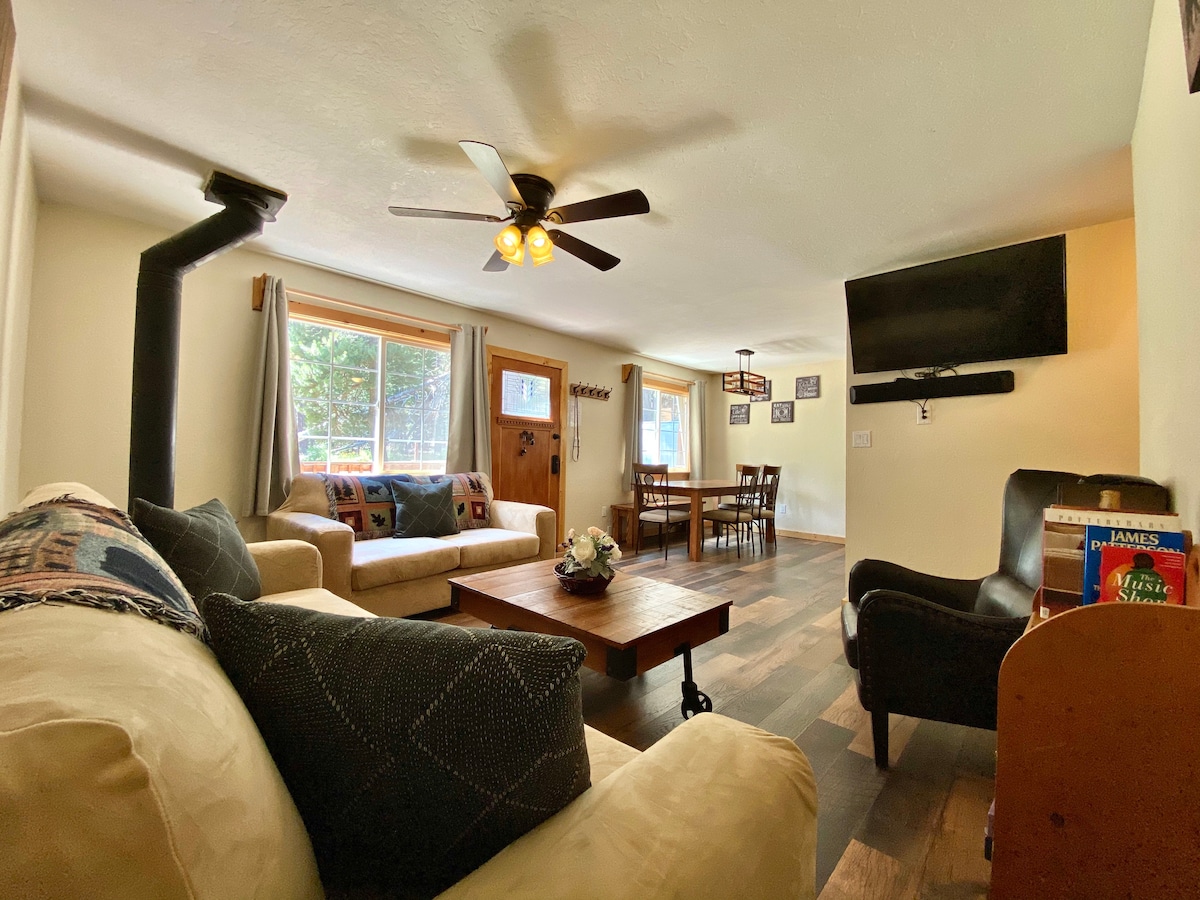 Ubicada en Olympic Valley a lo largo del río Truckee, esta casa de 3 dormitorios y 2,5 baños ofrece una comodidad acogedora y una verdadera vida en la montaña. Disfruta del acceso al río para pescar, una chimenea frente al río, pisos con calefacción y una chimenea. A pocos minutos de esquí de clase mundial en Palisades Tahoe y centros vacacionales cercanos. Con televisores inteligentes, wifi de alta velocidad, un cargador de automóvil y una terraza bordeada de pinos, este tranquilo refugio está cerca del lago Tahoe y del centro de Truckee.