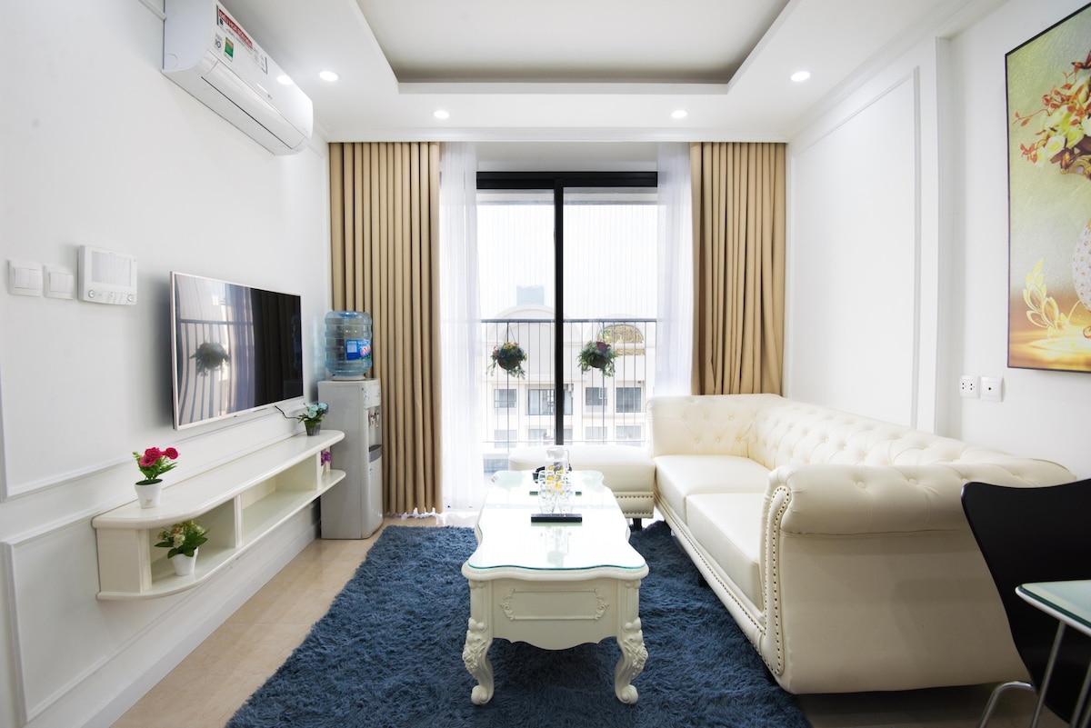 ◈ La cadena de apartamentos modernos ubicados en los lujosos complejos de apartamentos de Hanói. Vinhomes D’Capitale, uno de los mejores lugares para vivir en Hanói. Cada apartamento está decorado con buen gusto, limpio y tiene una gran vista a la ciudad, vistas al lago desde los mejores pisos. Ofrecemos un alojamiento perfecto para parejas, familias, viajes de negocios o viajeros solteros. ◈ Este nuevo apartamento tiene 2 dormitorios con colchones de muelles, 1 baño privado, sala de estar con cómodo sofá para relajarse con un televisor inteligente.