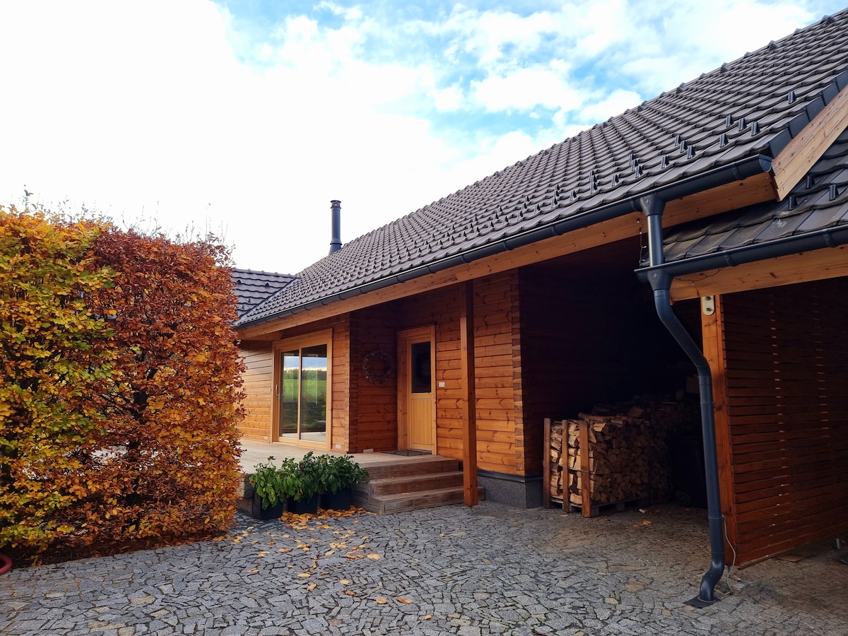 Escape to a tastefully renovated historical cabin. Warm up in the wood-fired sauna, then cool off in a natural pond. Enjoy the sound of the waterfall, forest, and nature all around. Relax by the window with a crackling fire. Luxury comforts include a Bowers & Wilkins sound system, a fully equipped kitchen upcycled from old wooden doors, and a bathroom with heated floors and a rain shower. Perfect for a romantic stay or remote work with a pull-out Dell monitor. Just 30 minutes from Prague.