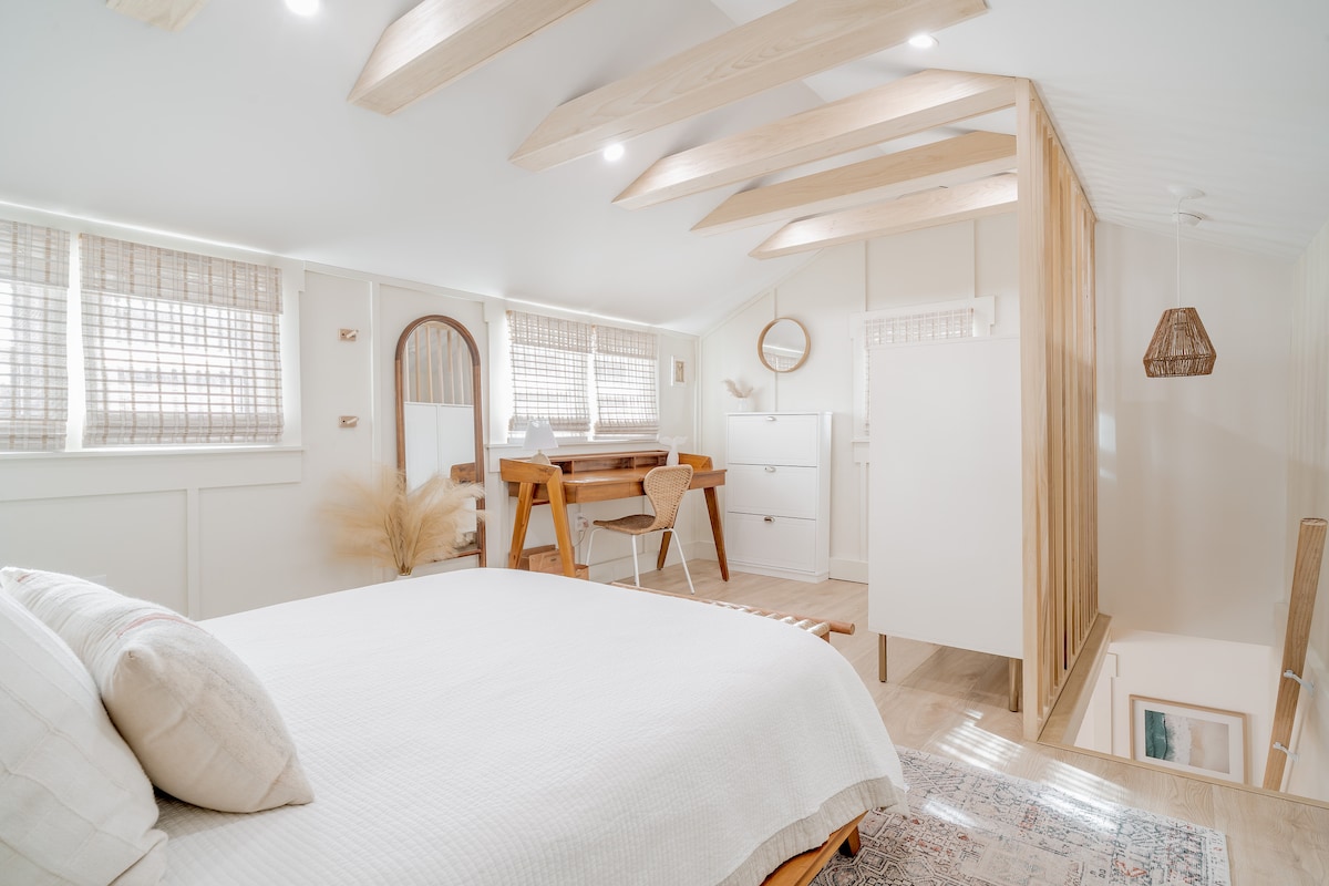 Haven on Adullam Lake - The Loft - a spacious, private second-story studio with a queen bed, full bath, and kitchenette nestled on a peaceful, family-owned 40-acre lakeside property, minutes from Stone Harbor and Cape May. Enjoy expansive lake and forest views from your private sunset deck, large windows that flood the space with natural light, hiking trails, hammocks, county bike path, and a crystal-clear lake with complimentary water sports equipment.